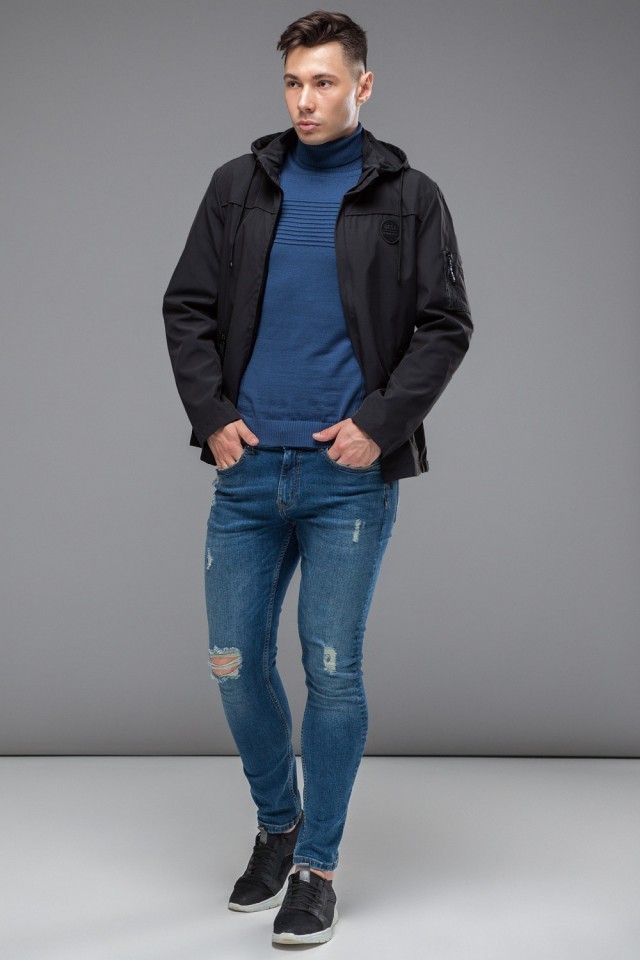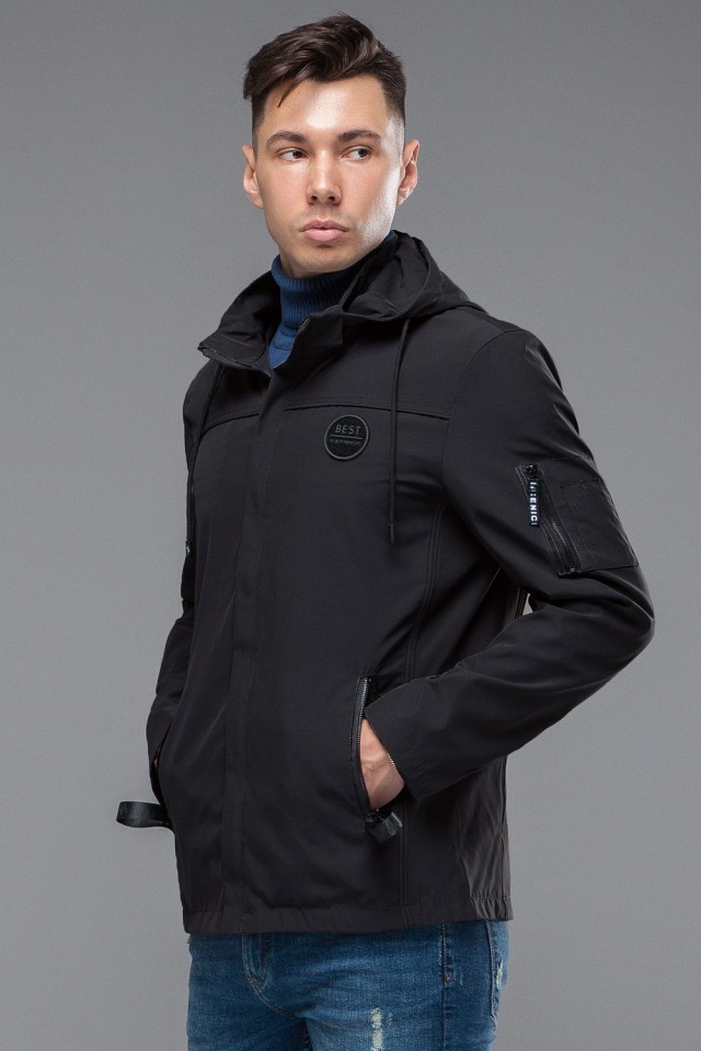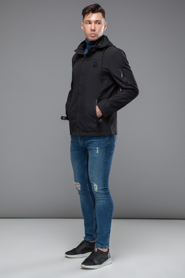 Молодежная черная ветровка осенне-весенняя мужская модель 15610