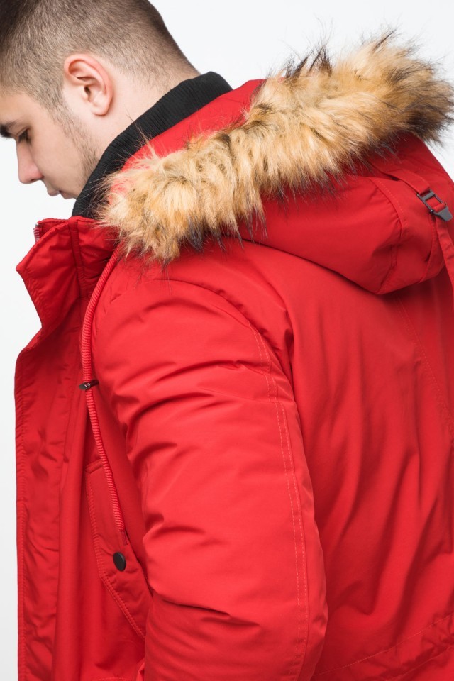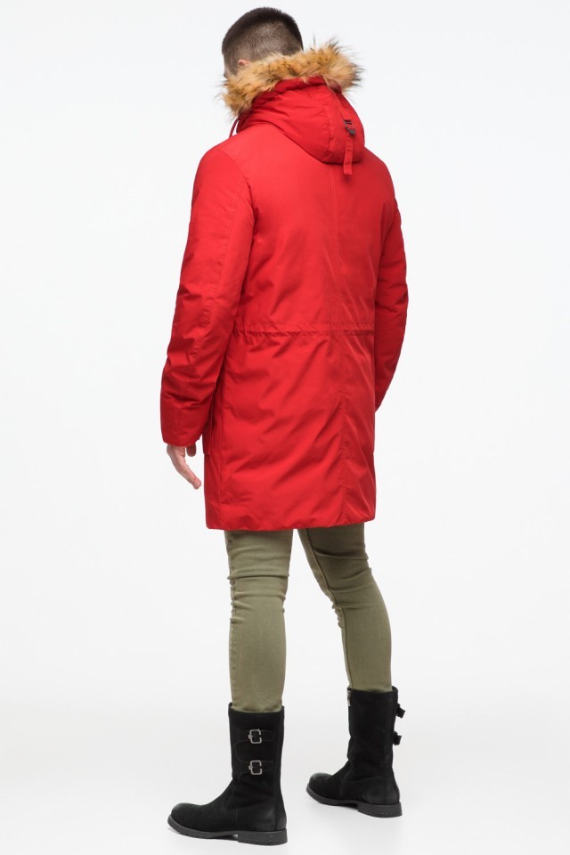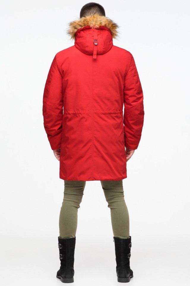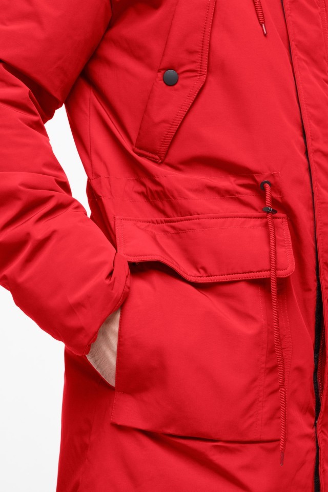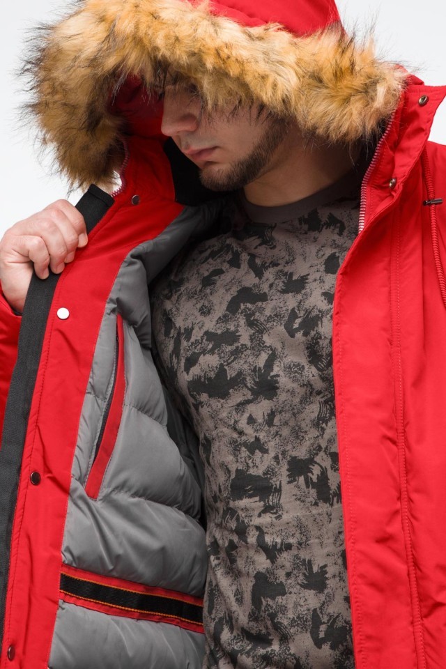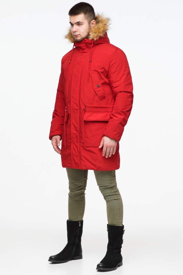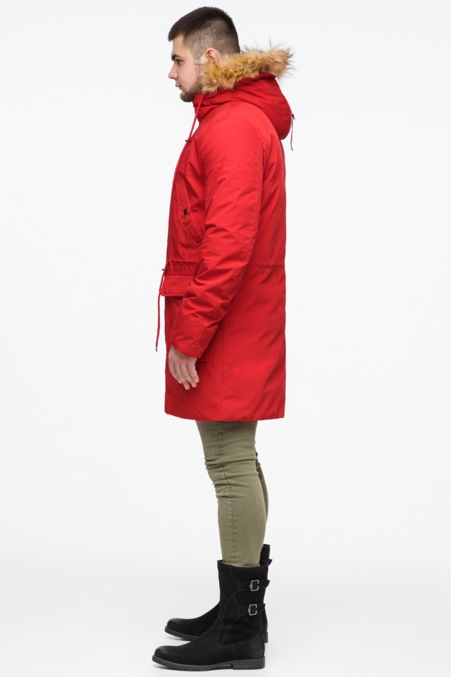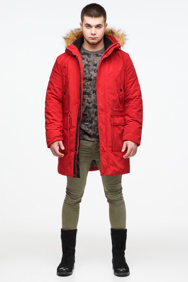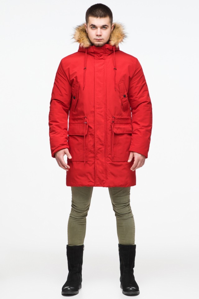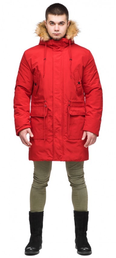 Молодежная мужская красная зимняя парка с карманами модель 25690