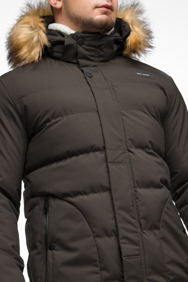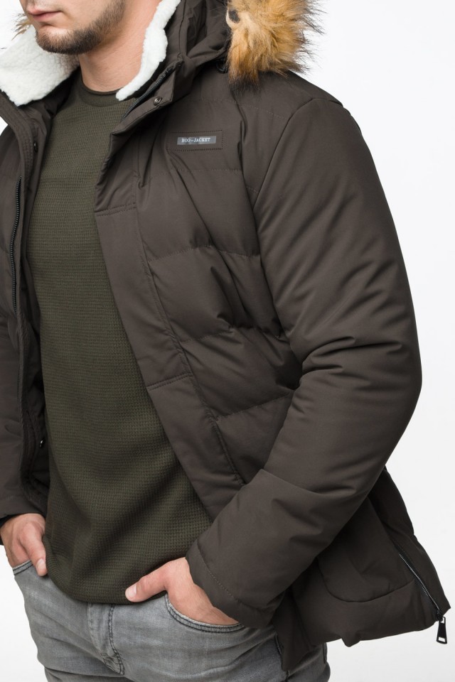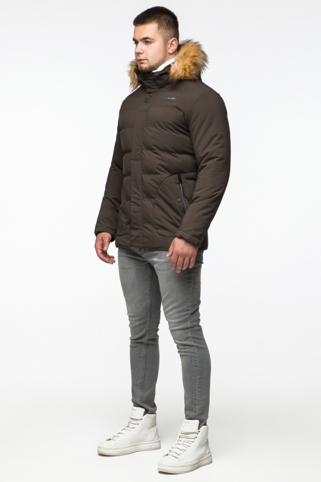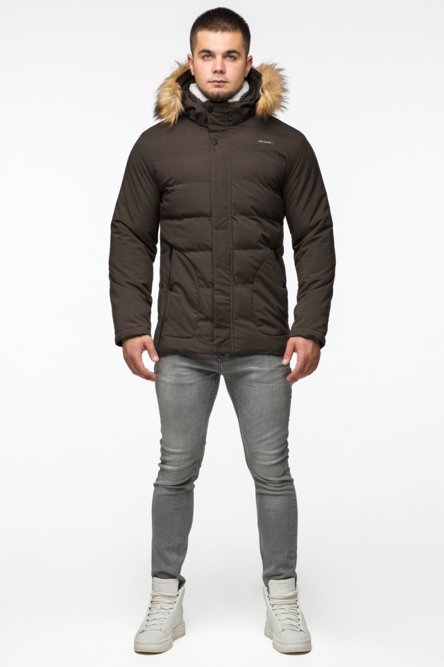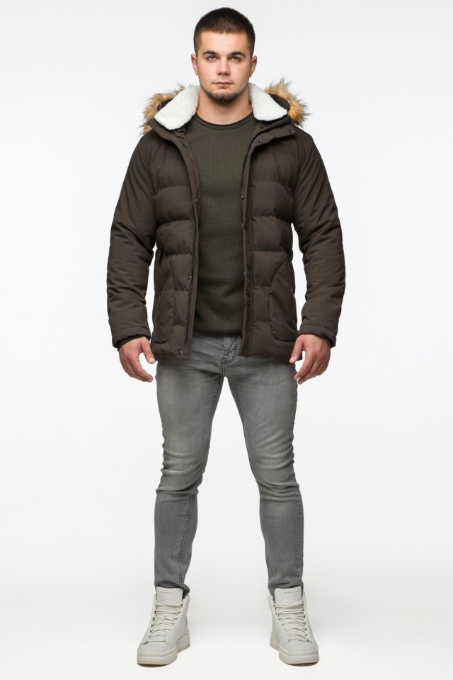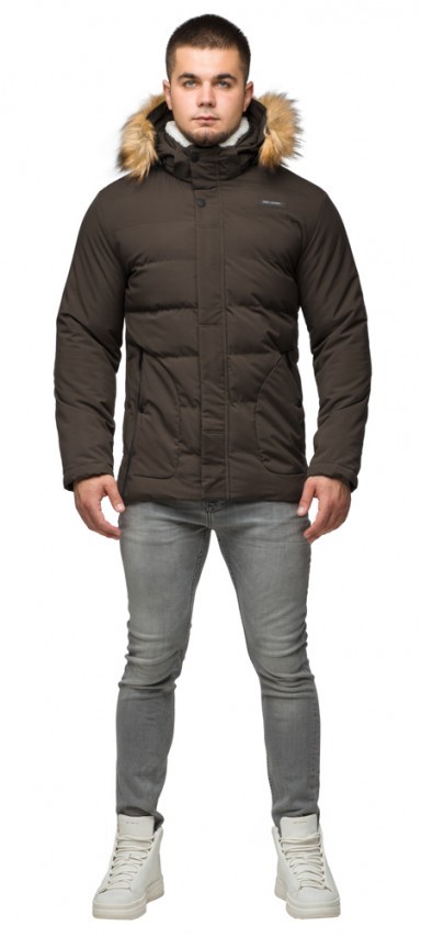 Молодежная мужская зимняя куртка цвета кофе модель 25780