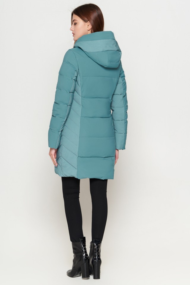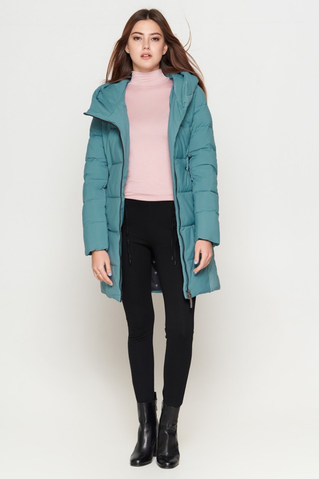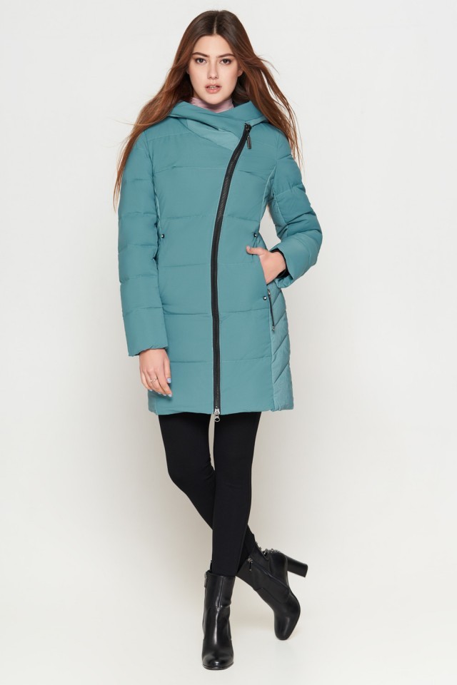 Молодежный зеленый пуховик женский на зиму модель 25085
