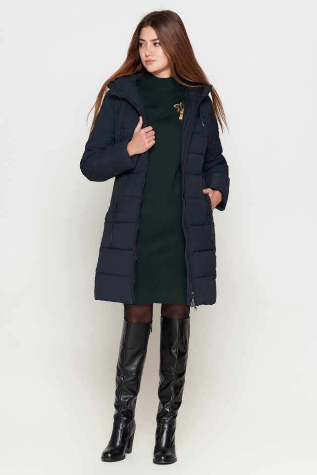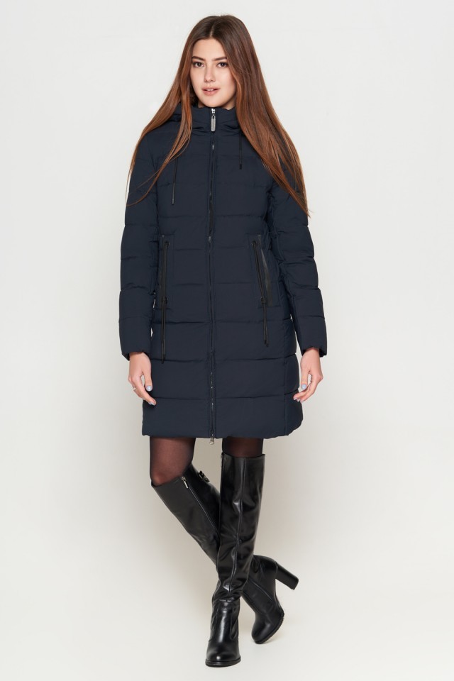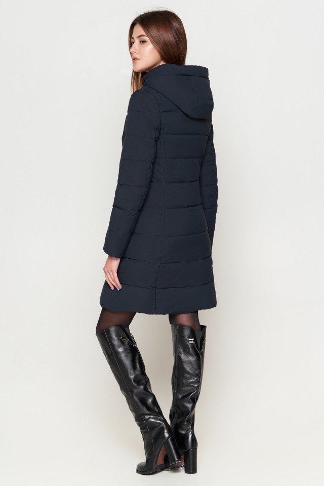 Молодежный женский пуховик зимний цвет темно-синий модель 25285-1