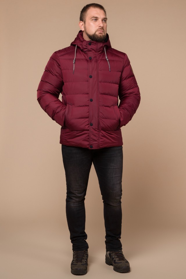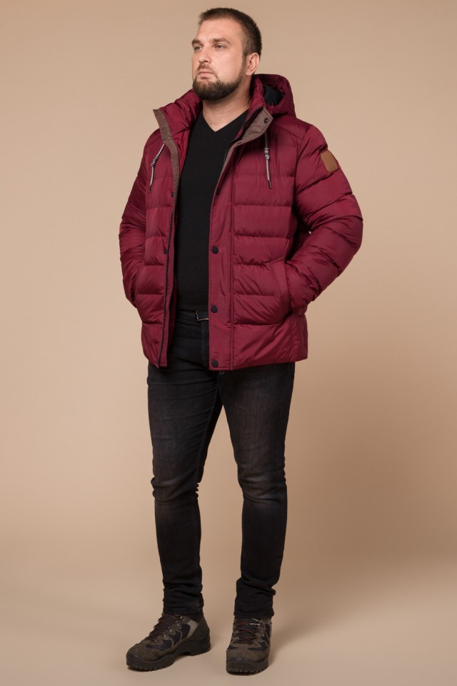 Мужская бордовая куртка с карманами зимняя модель 46215
