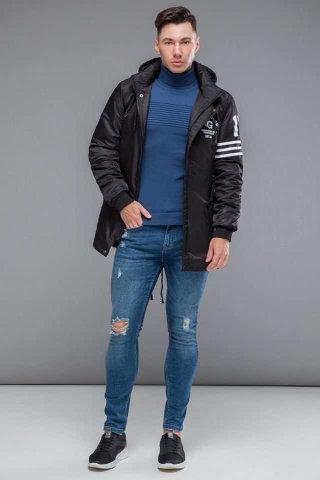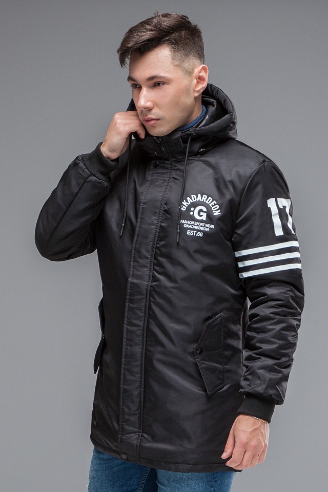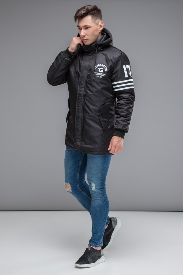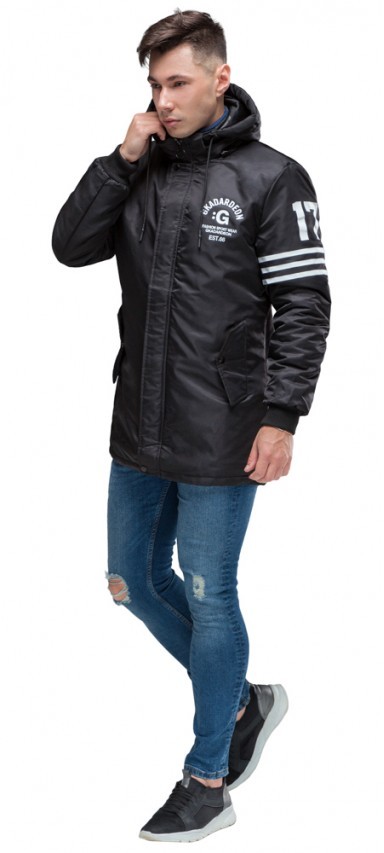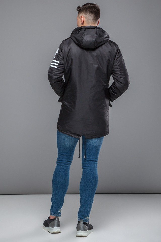 Мужская черная парка молодежная осенне-весенняя модель 31292