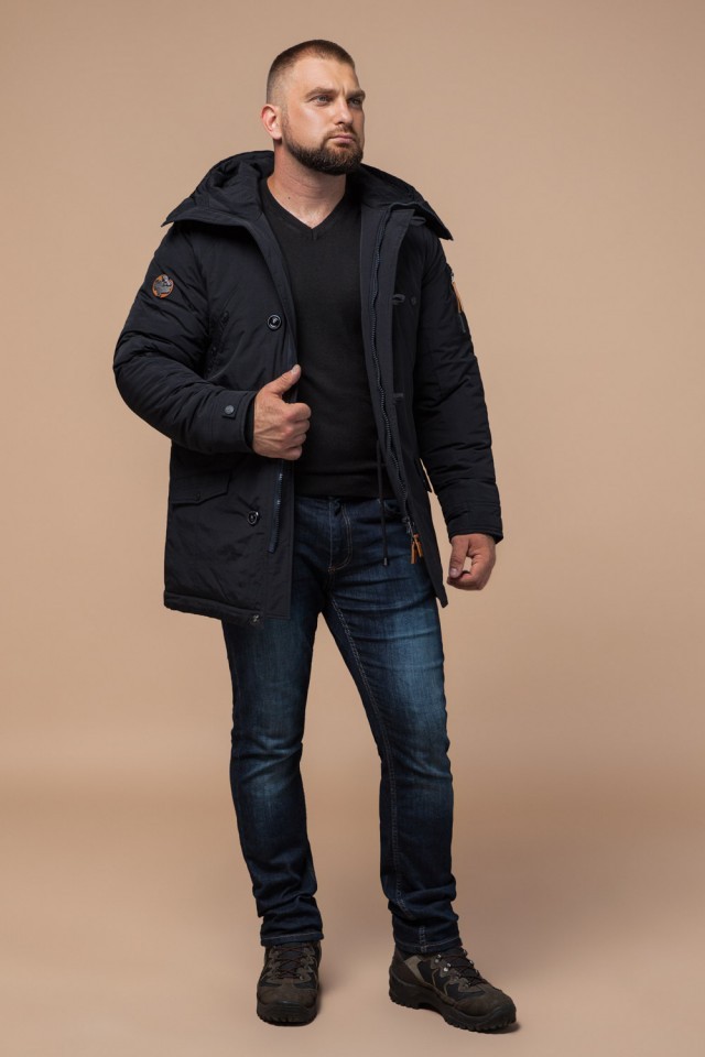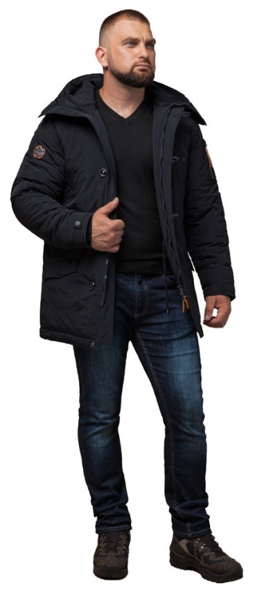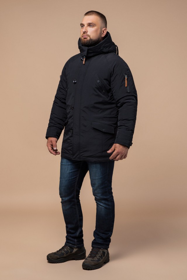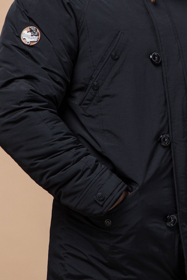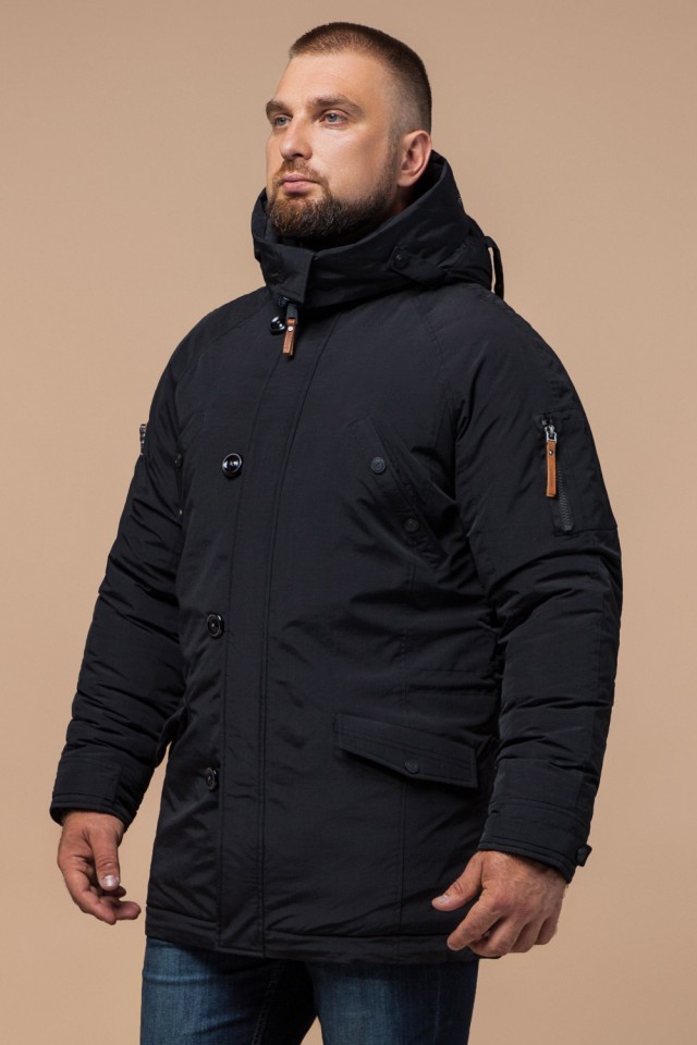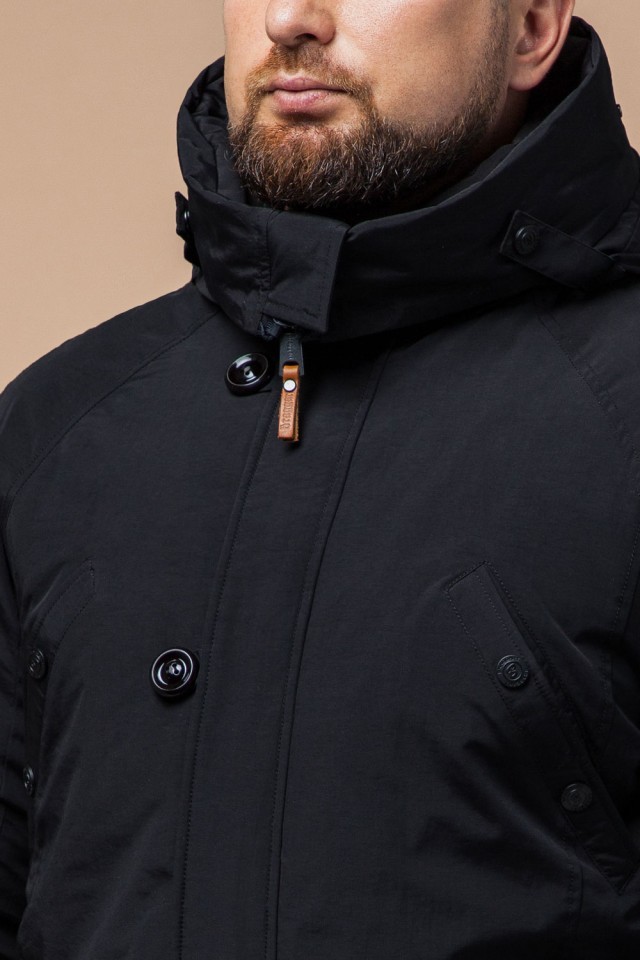 Мужская черная парка зимняя с кулиской модель 2694