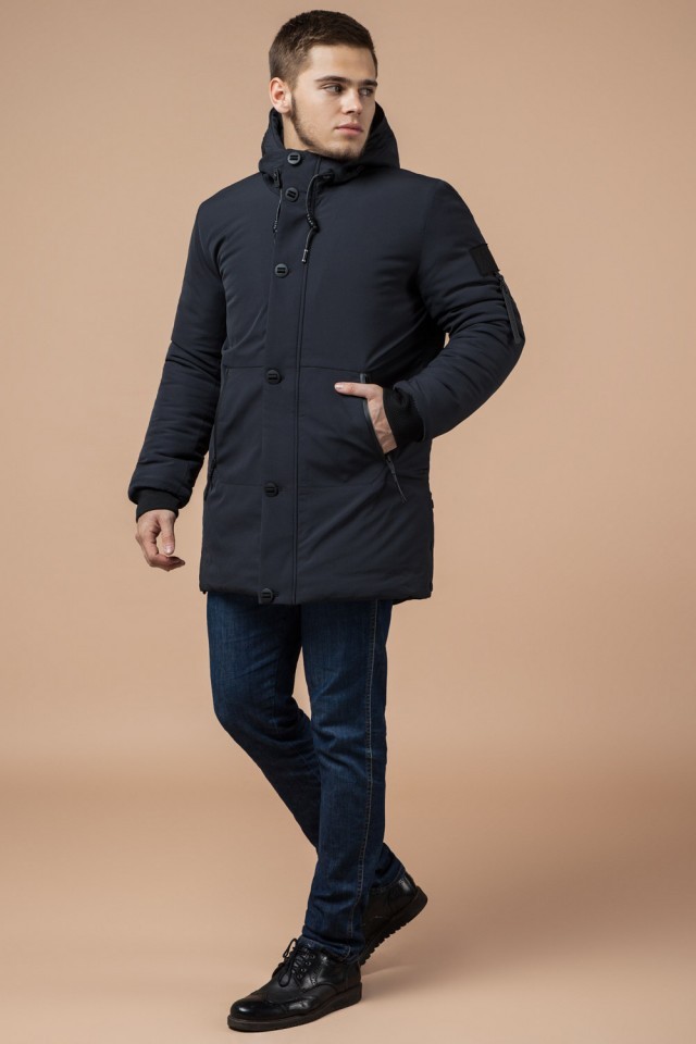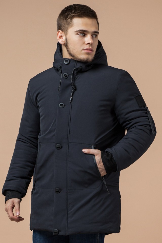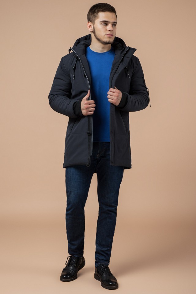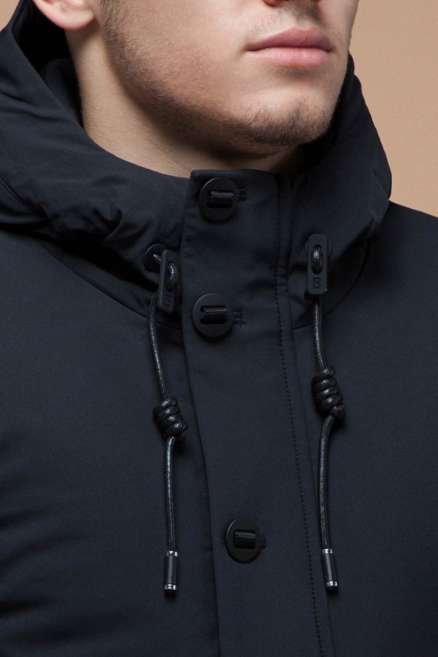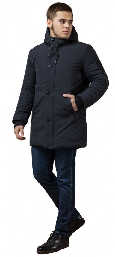 Мужская графитовая парка зимняя с вшитым капюшоном модель 9042