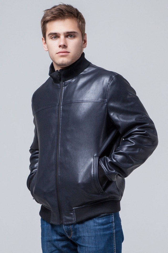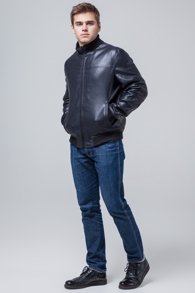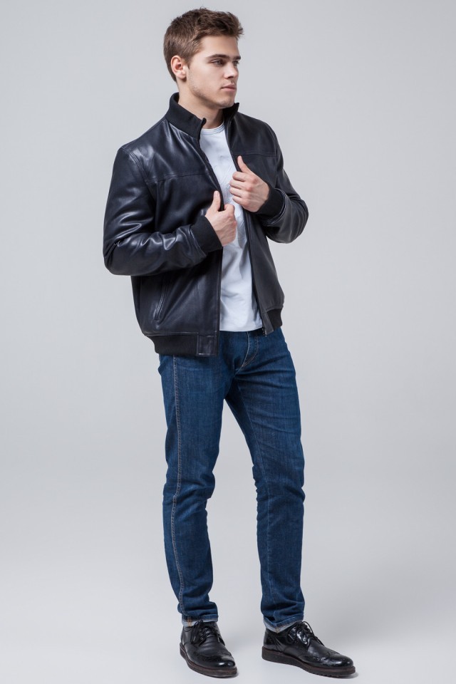 Мужская короткая осенне-весенняя молодежная куртка темно-синяя модель 2970