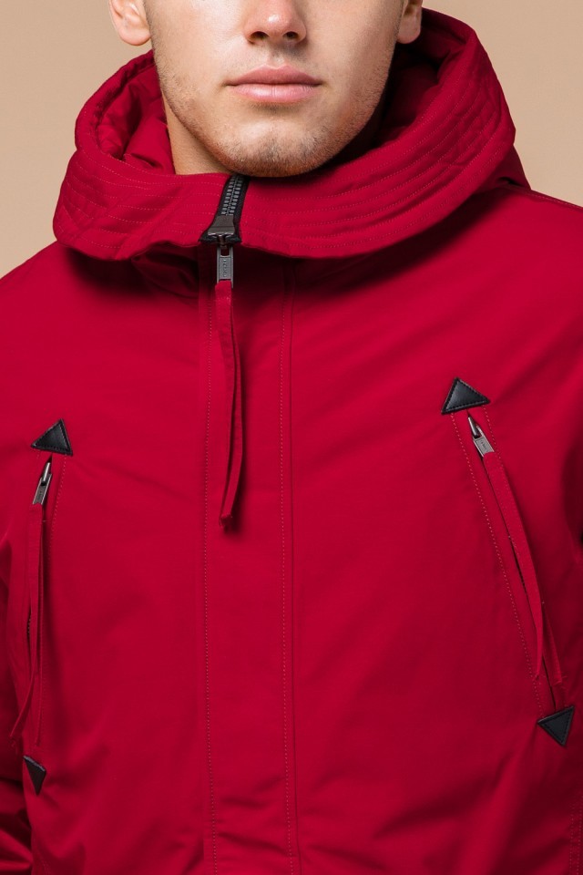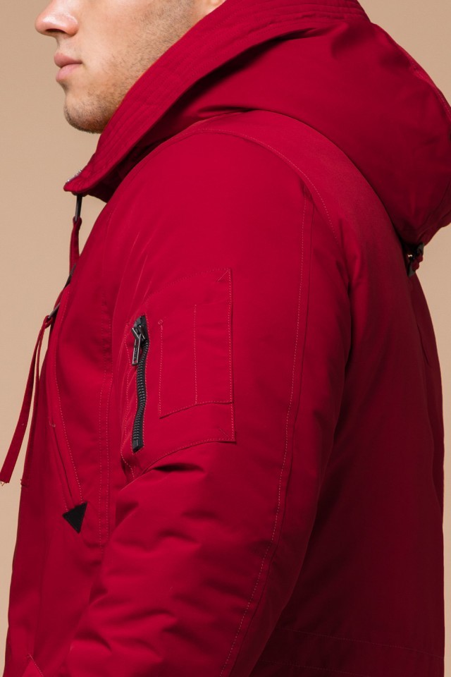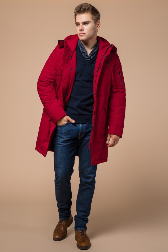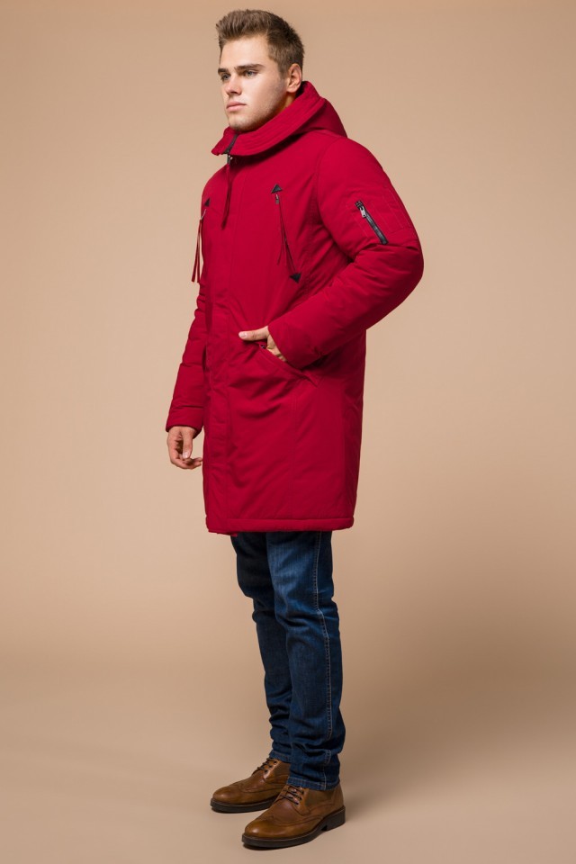 Мужская красная парка зимняя с прорезными карманами модель 23675