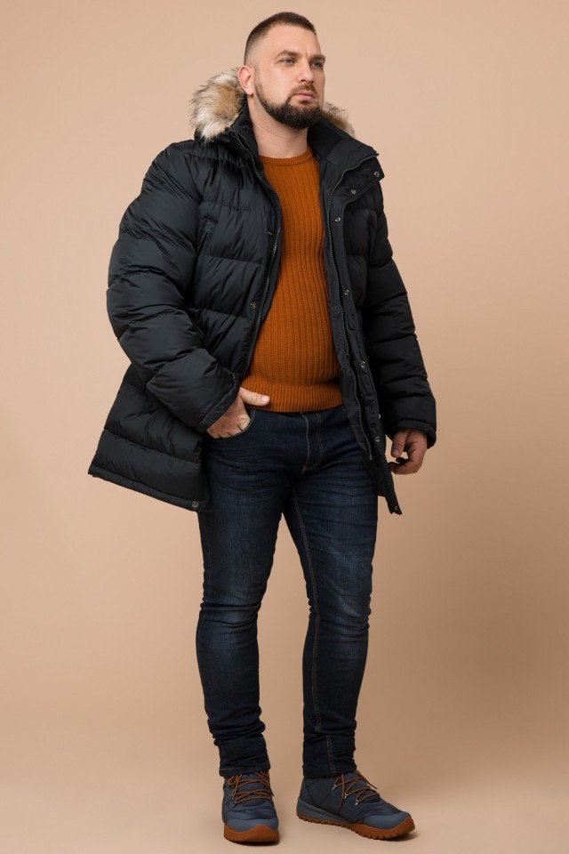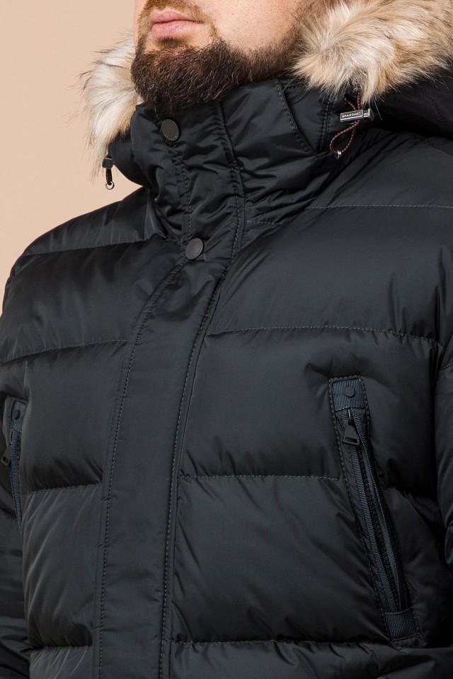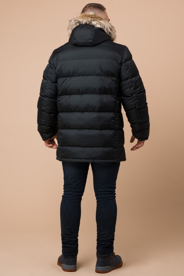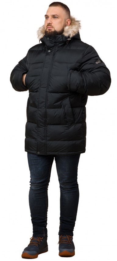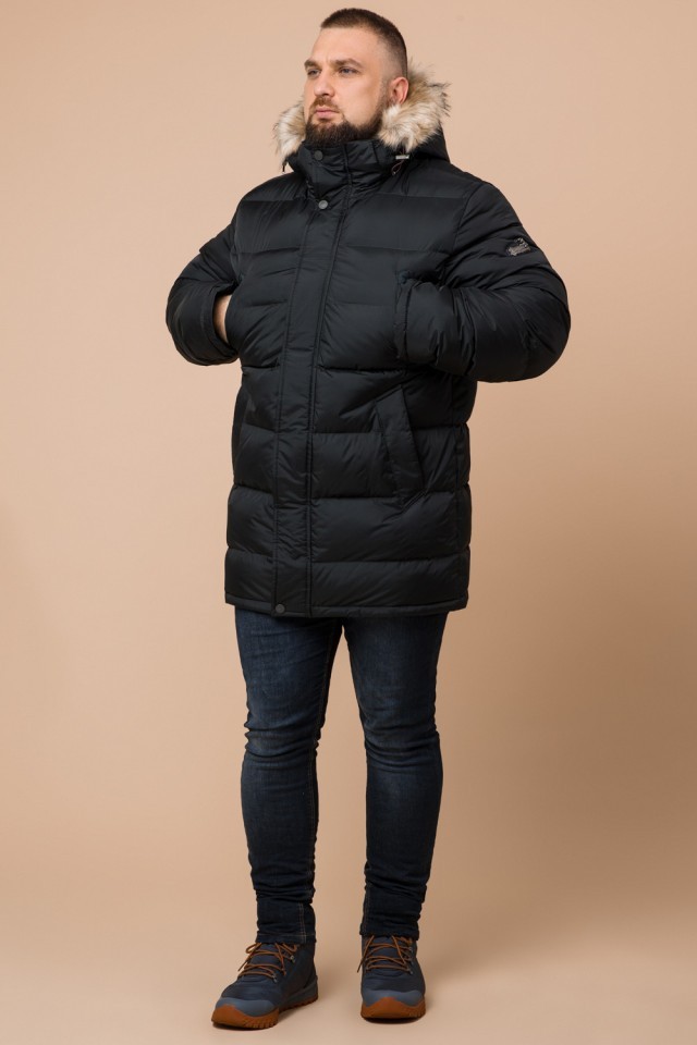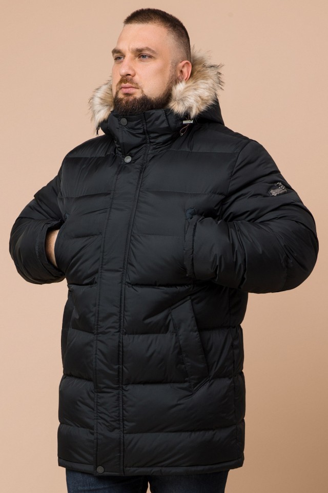 Мужская куртка большого размера графитового цвета на зиму модель 37762
