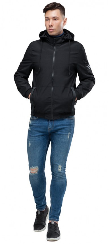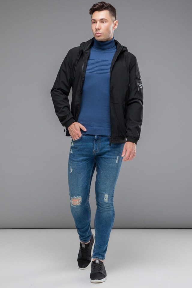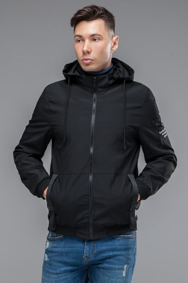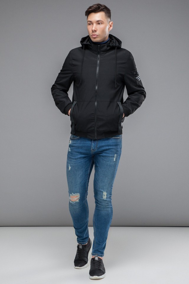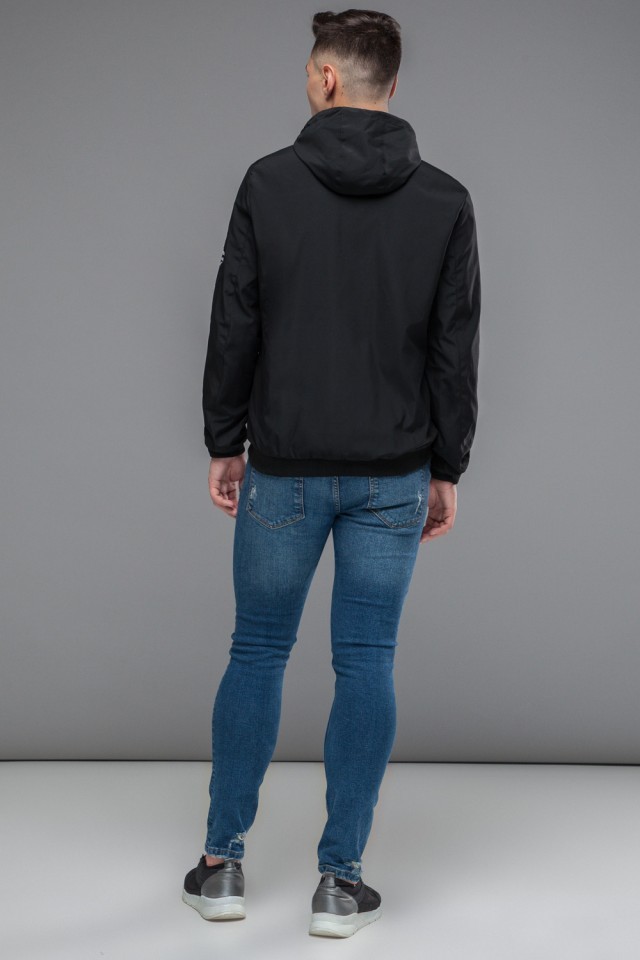 Мужская молодежная черная ветровка стандартной длины осенне-весенняя модель 29430