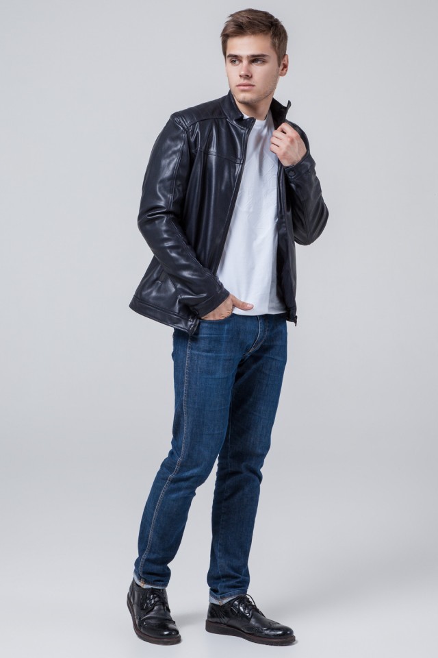 Мужская осенне-весенняя молодежная куртка темно-синяя модель 4834