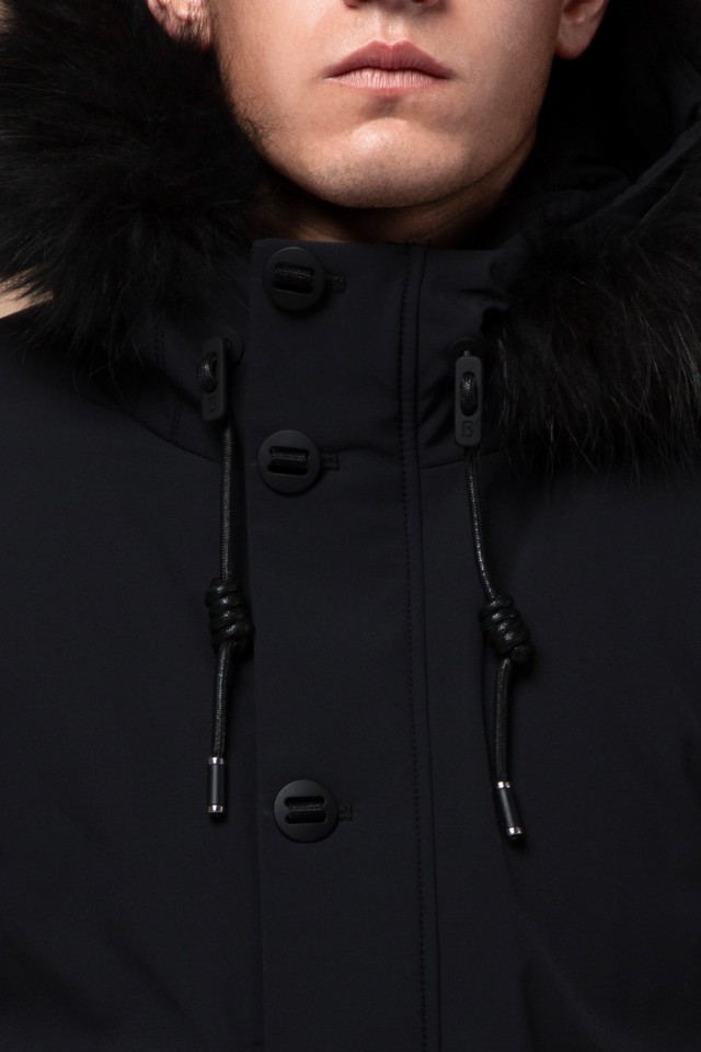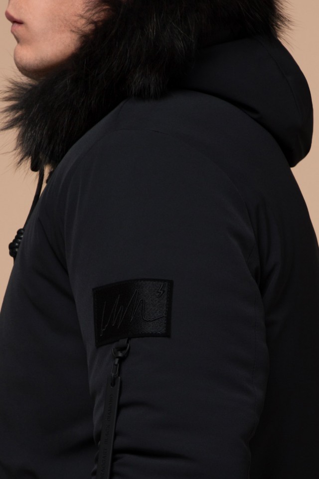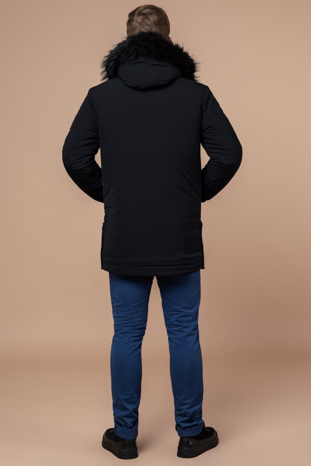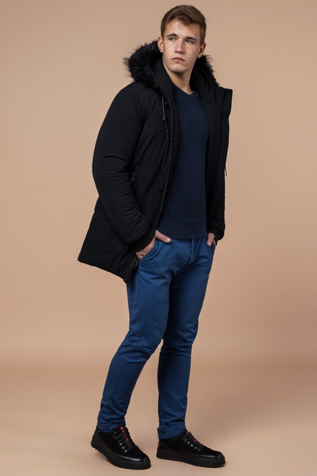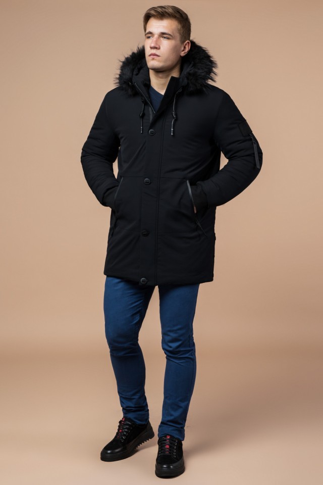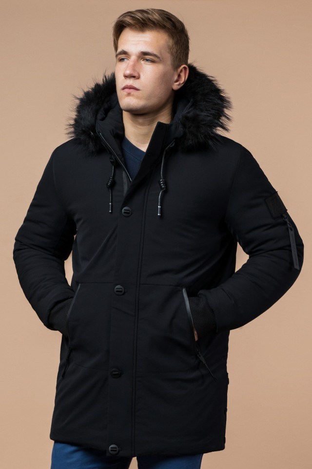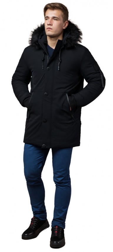 Мужская парка черная зимняя с карманами модель 9842