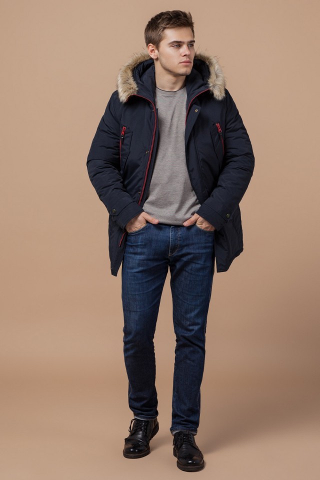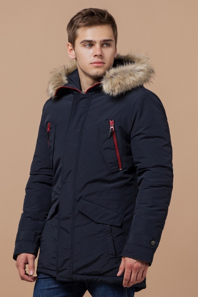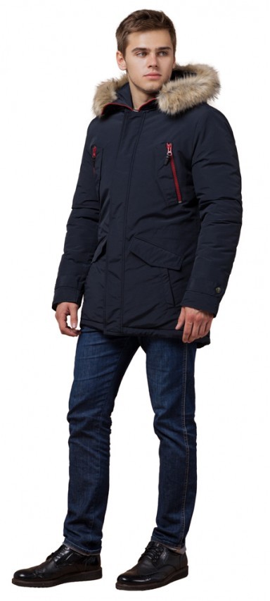 Мужская парка синяя зимняя модель 37560
