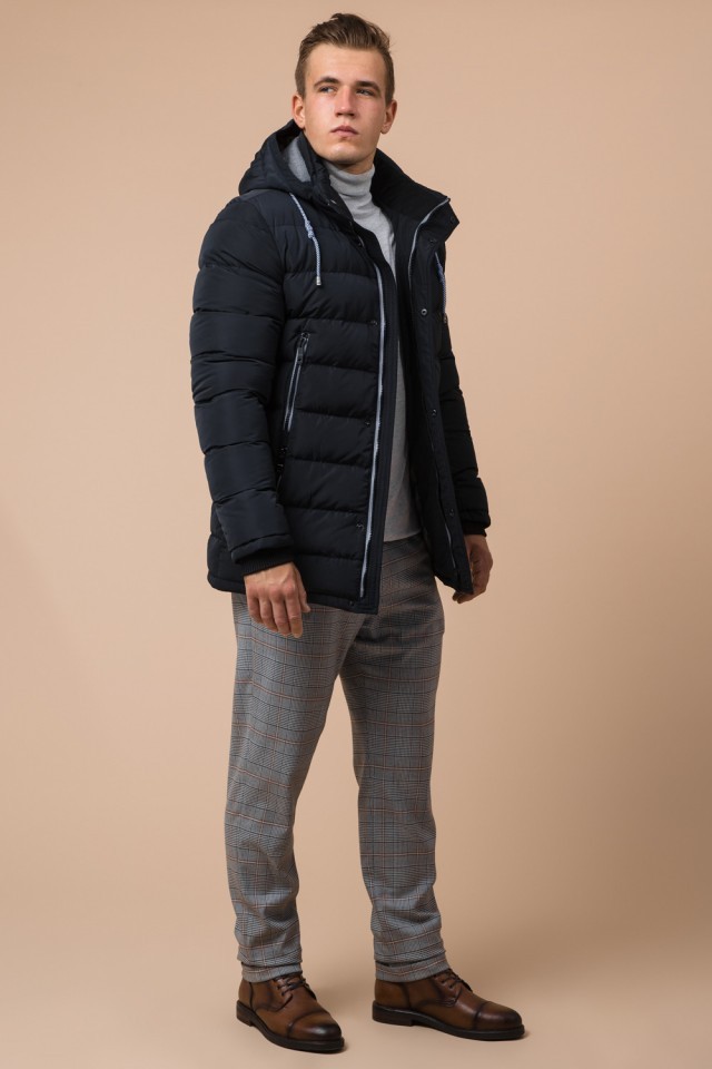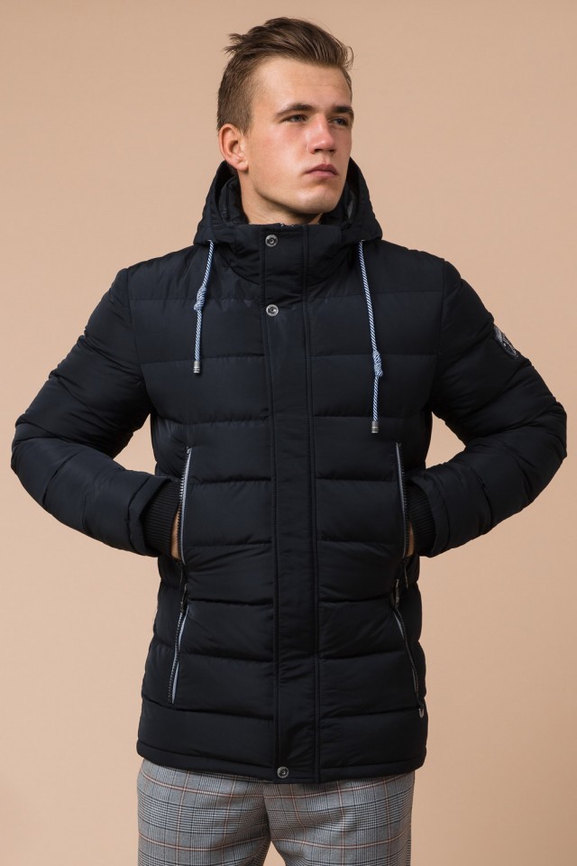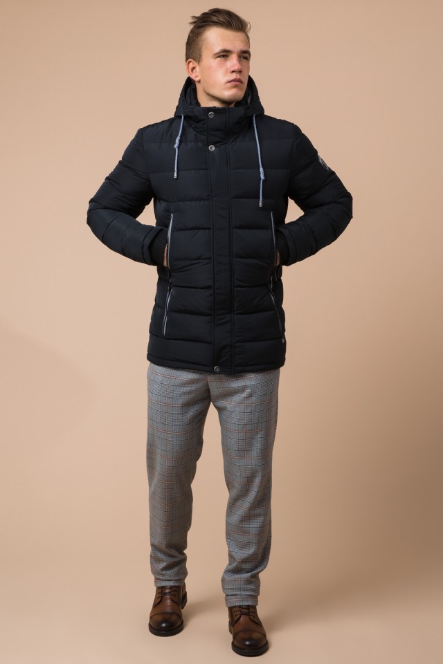 Мужская практичная куртка черно-синяя зимняя модель 38828