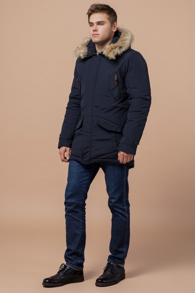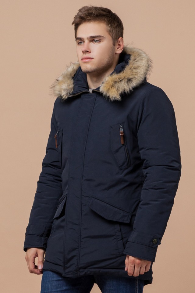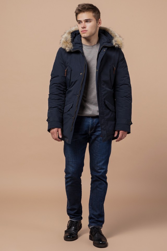 Мужская синяя парка зимняя стандартной длины модель 32450