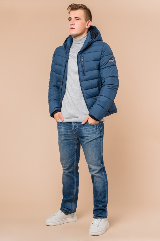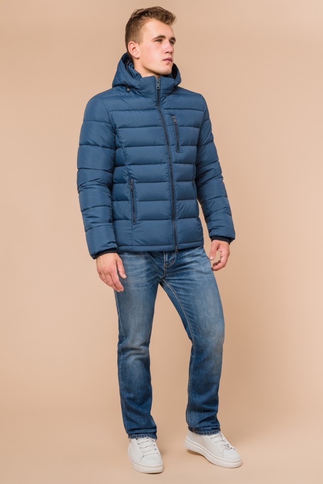 Мужская темно-бирюзовая куртка зимняя короткая модель 36450