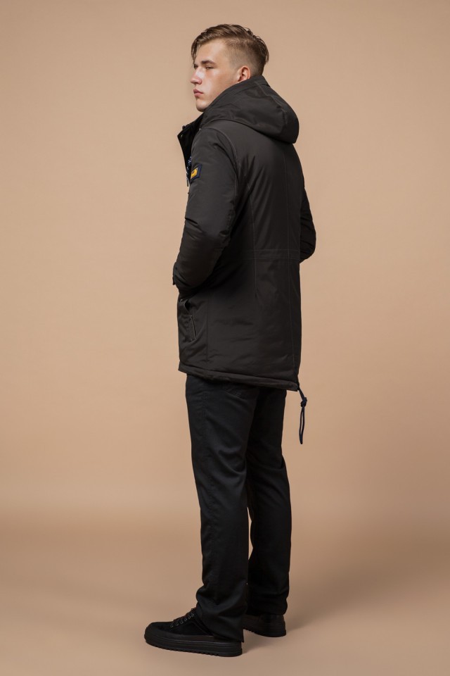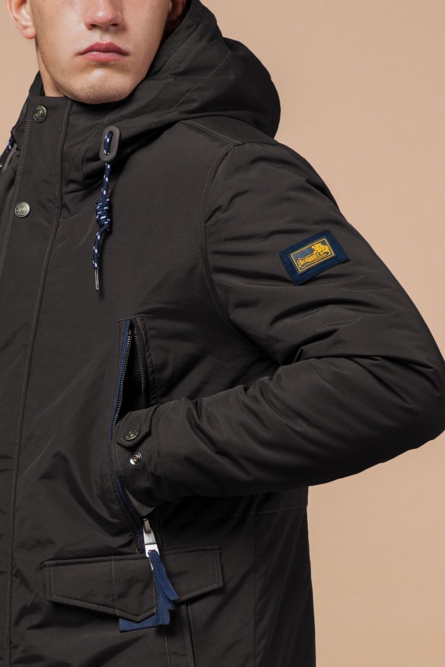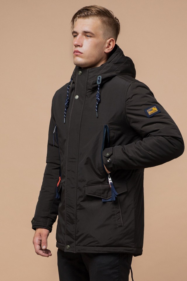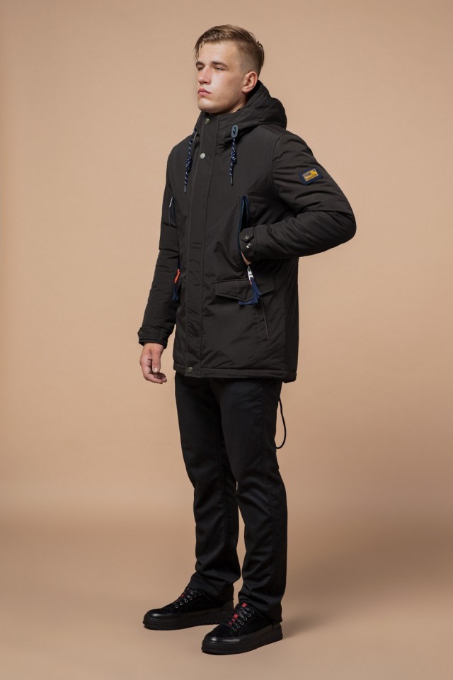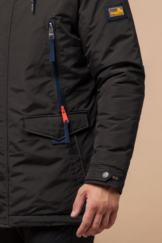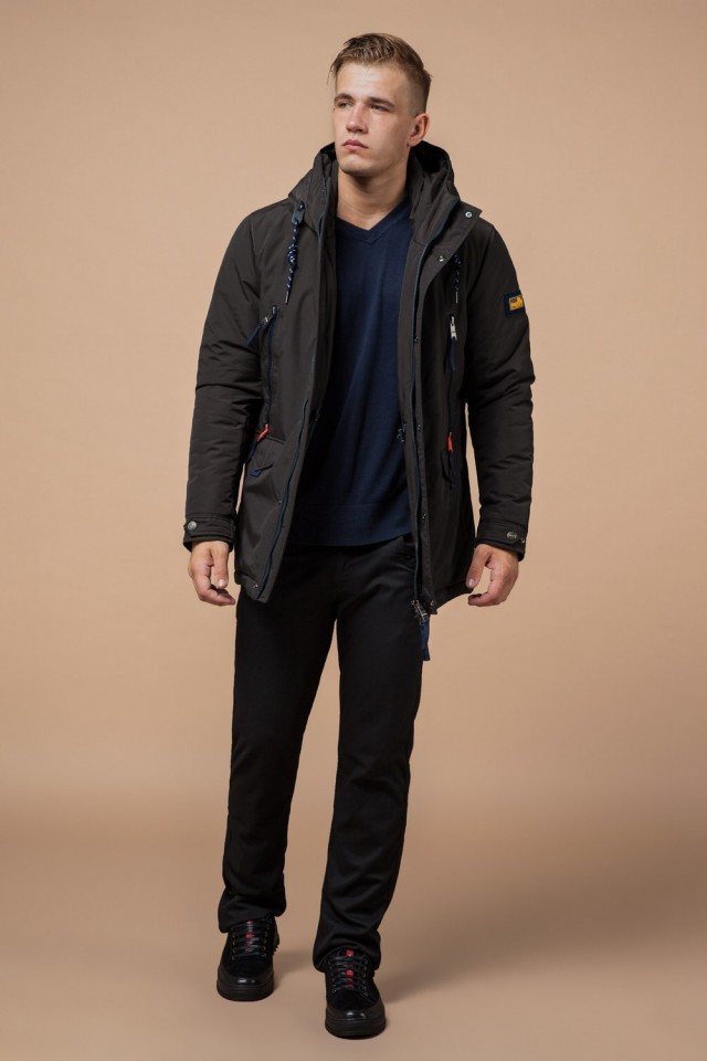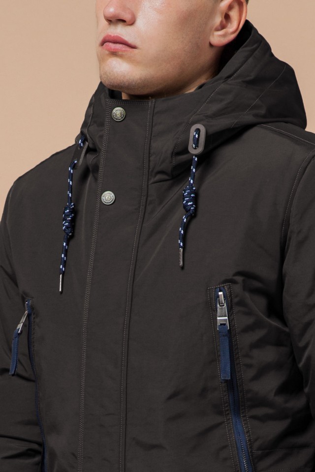 Мужская теплая парка зимняя цвет коричневый-темно-синий модель 1533