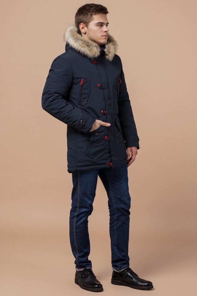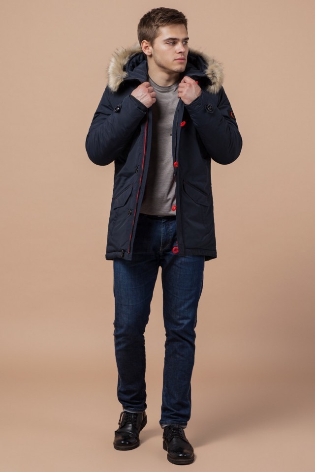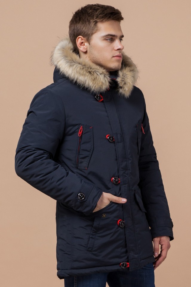 Мужская зимняя парка теплая цвет синий-красный модель 38230