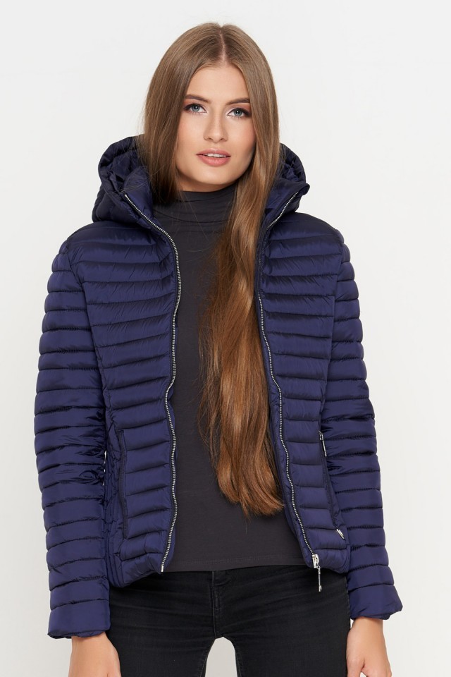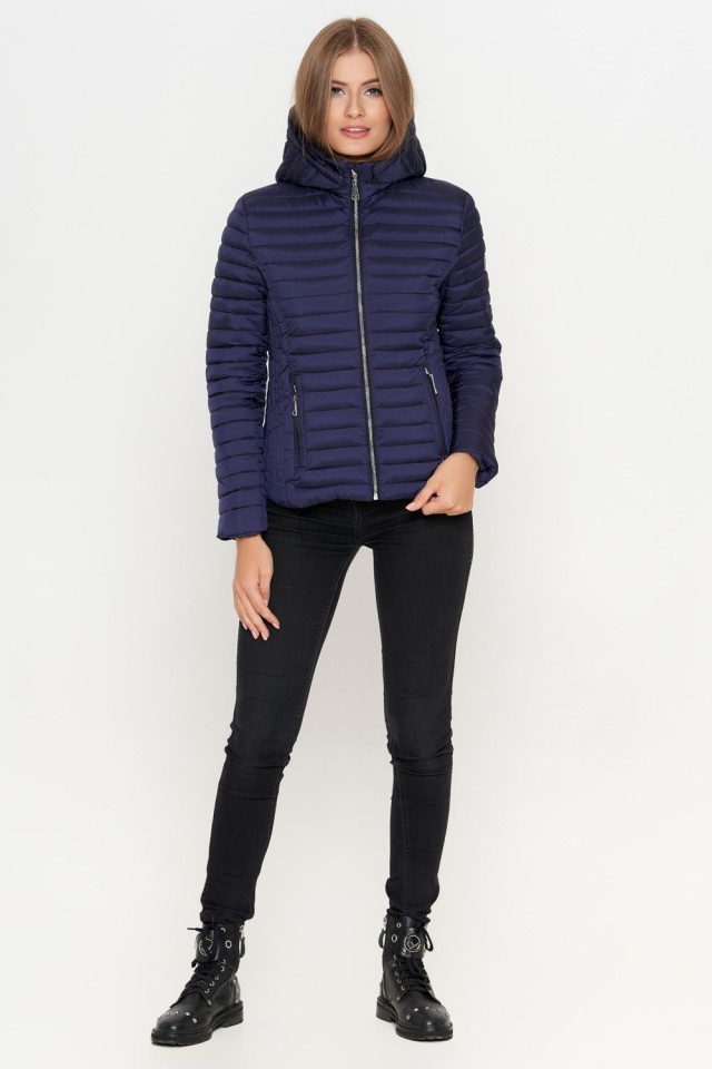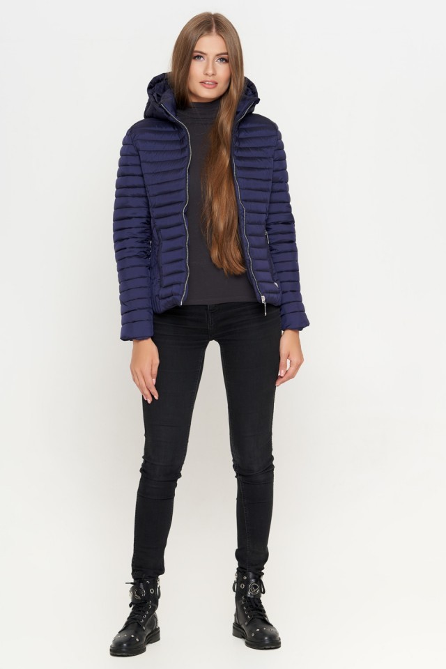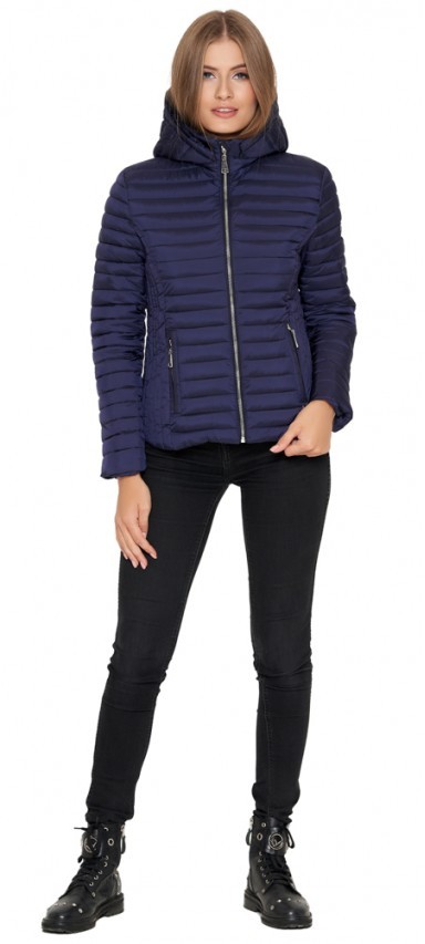 Осенне-весенний молодежный пуховик синий женский модель 25093