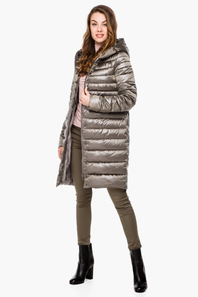 Фирменное изделие длиной до колен застегивается на молнию и кнопки. Новинка имеет продуманный до мелочей дизайн и качественный пошив. Данная верхняя одежда дополнена двумя прорезными горизонтальными карманами. Лицевая ткань этого предмета гардероба гладкая с небольшим блеском. Она обработана специальной водозащитной пропиткой. Подкладка однотонная и приятная на ощупь. Наполнитель равномерно распределен. Он не сбивается после продолжительной носки. Оттенок товара на сайте может немного отличаться от цвета реального изделия. Это связано с яркостью и настройками вашего монитора.