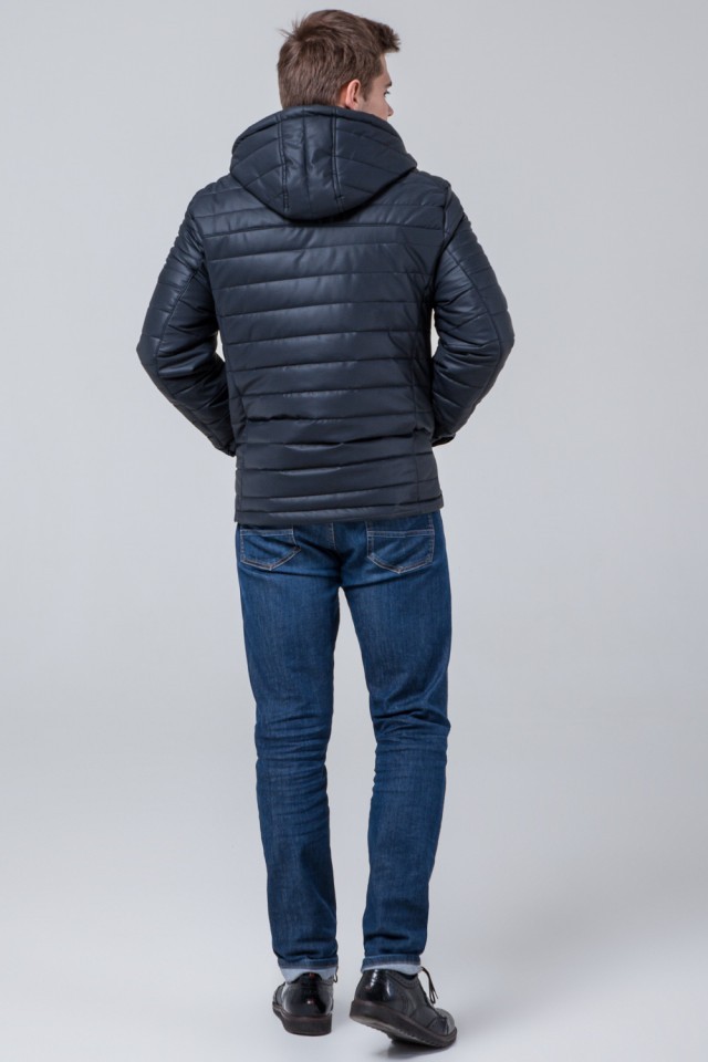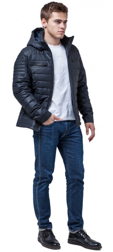 Осенне-весенняя мужская молодежная куртка темно-синяя с карманами модель 2260