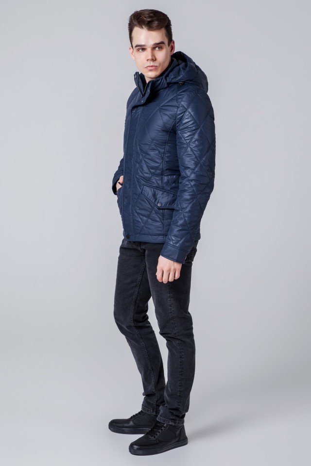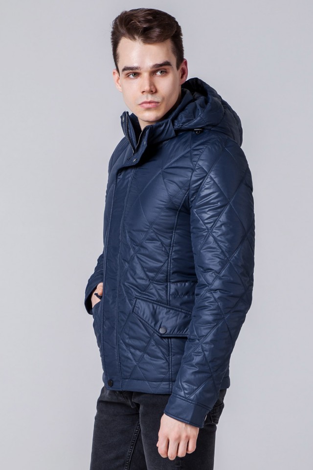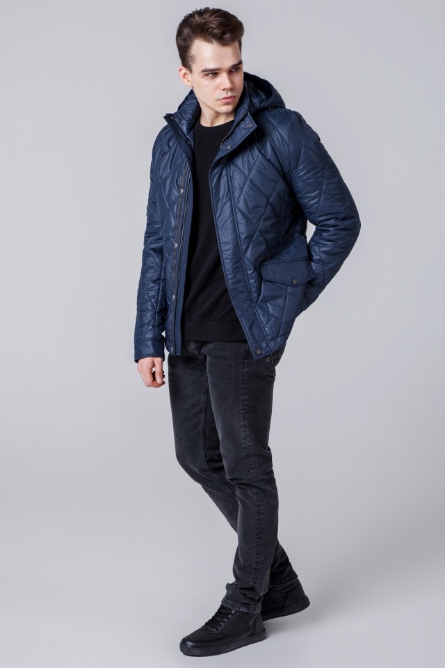 Осенне-весенняя синяя ветровка с карманами мужская модель 1489