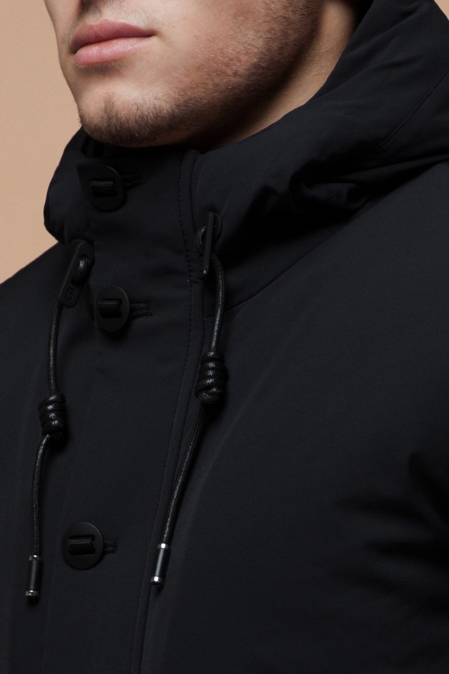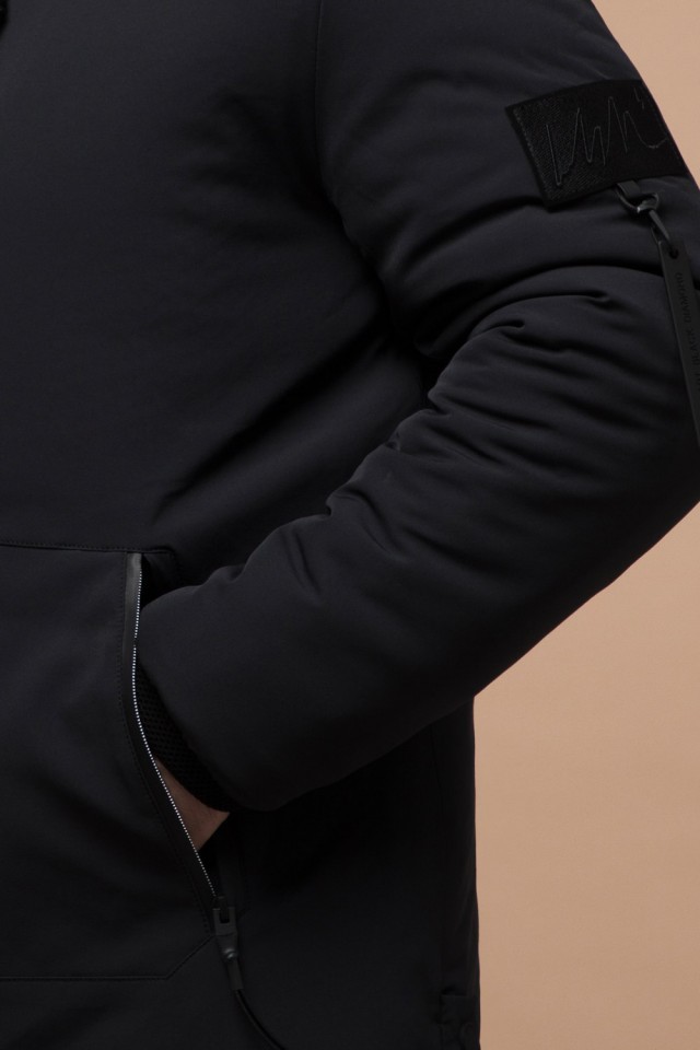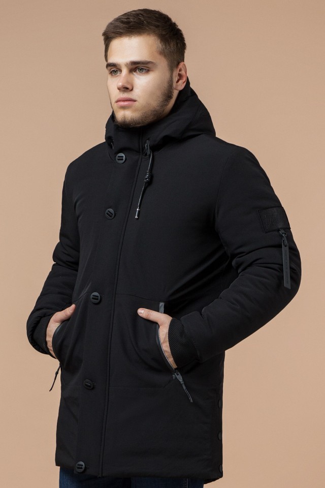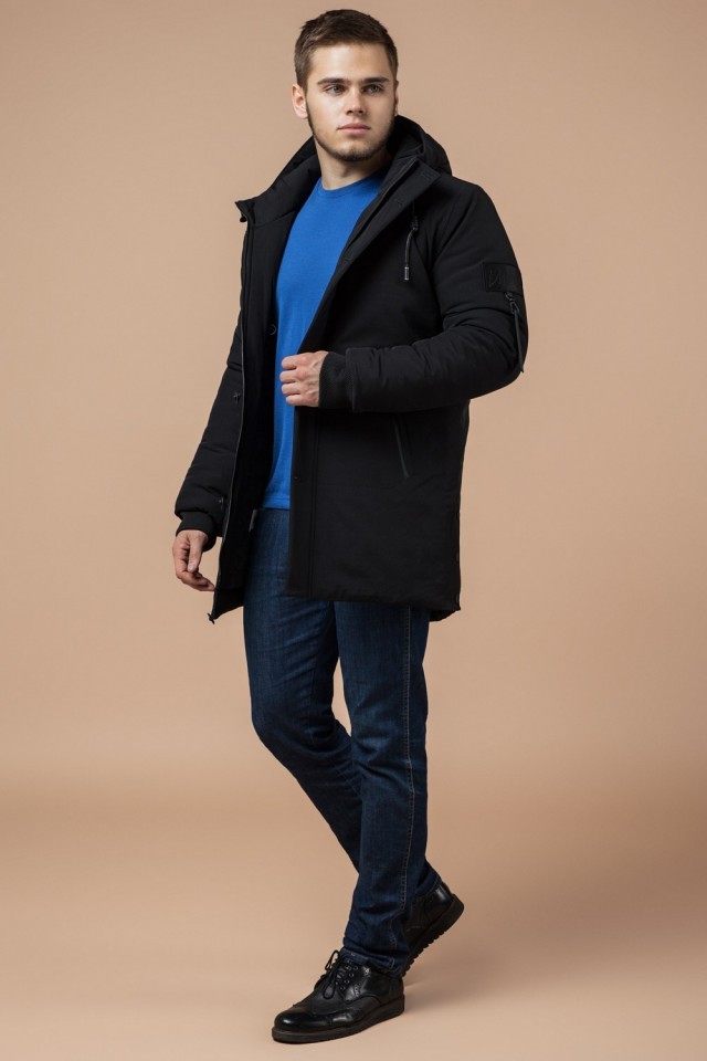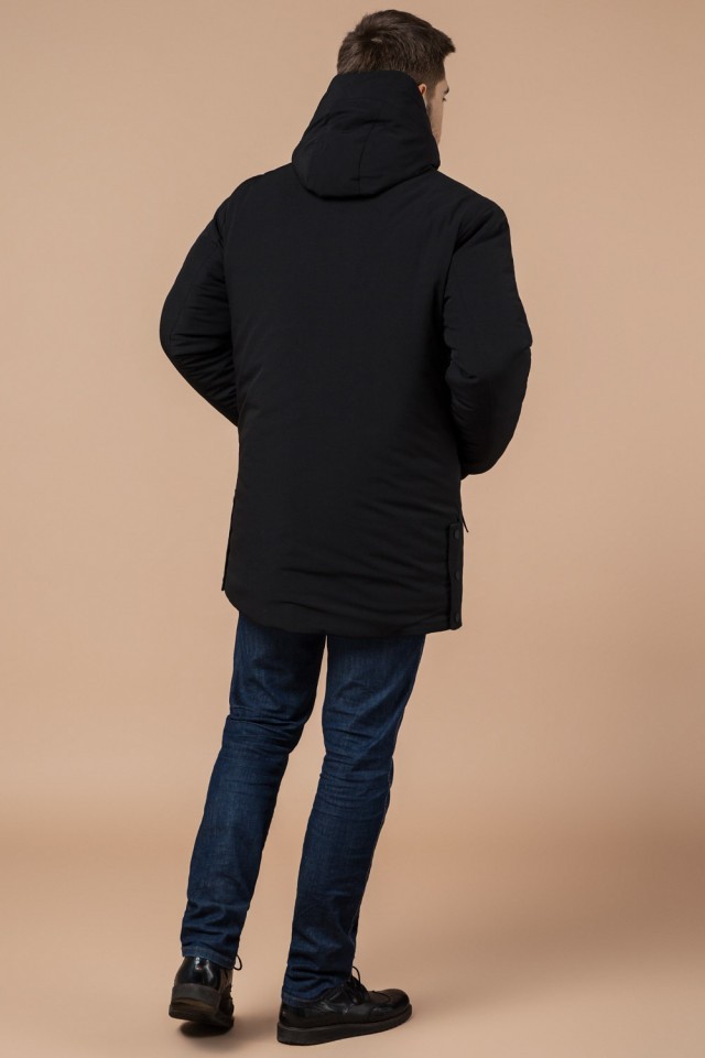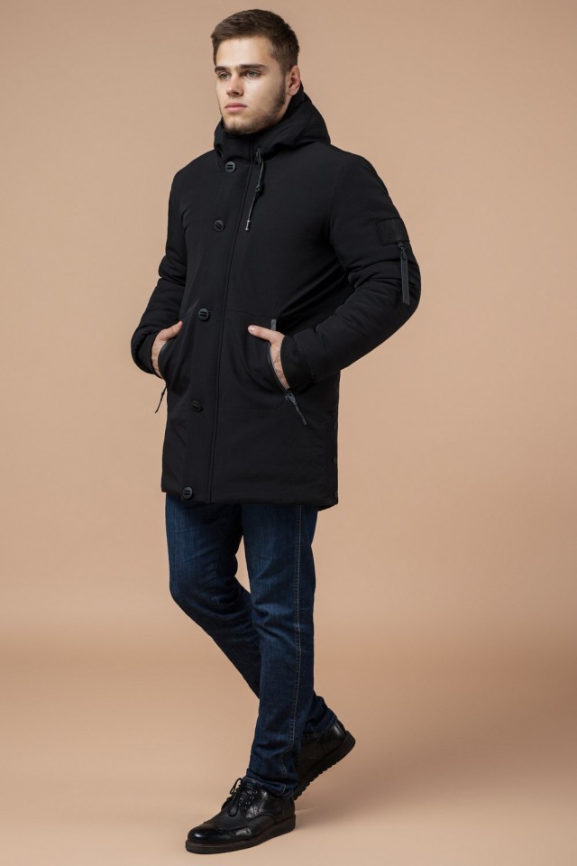 Парка черная с ветрозащитной планкой зимняя для мужчин модель 9042