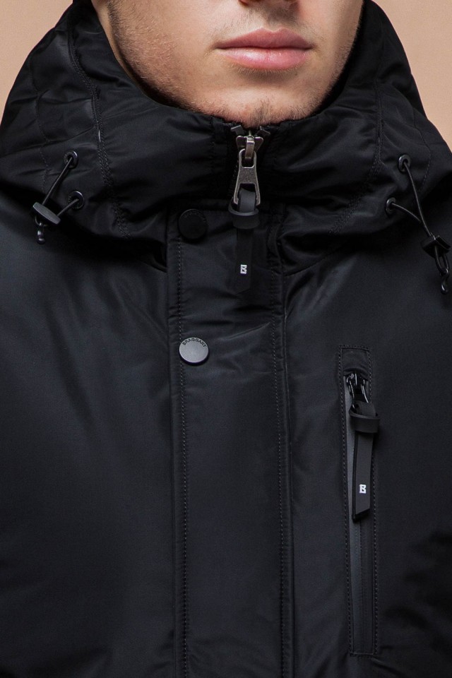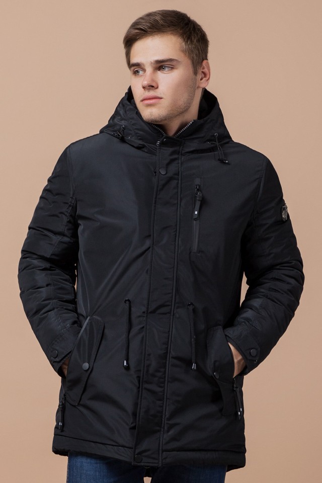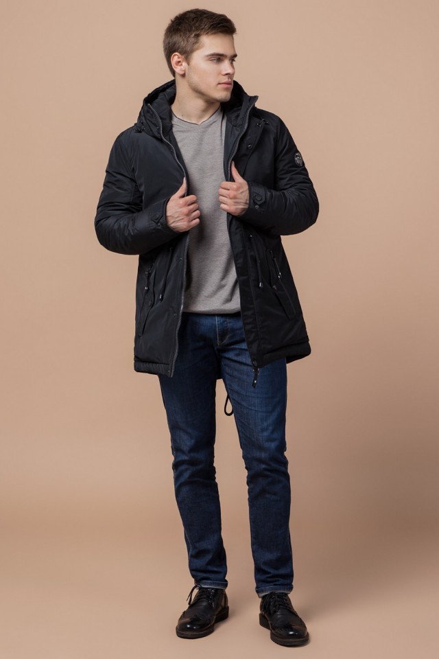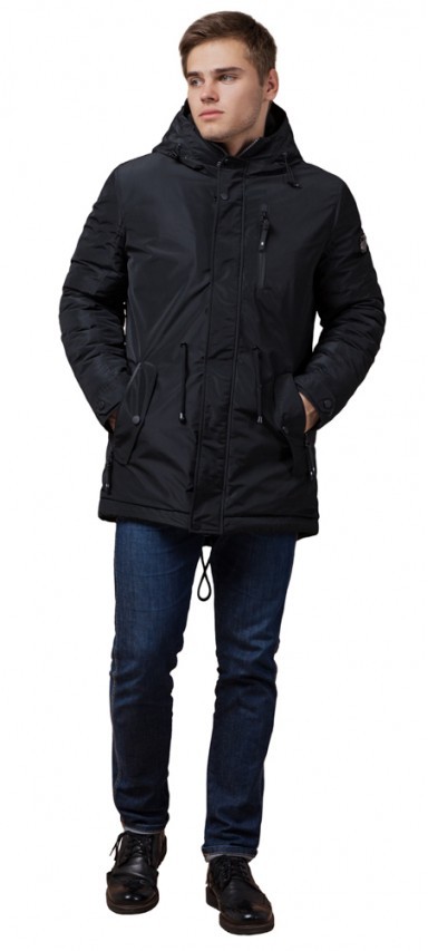 Парка черная зимняя мужская с водозащитным покрытием модель 49720