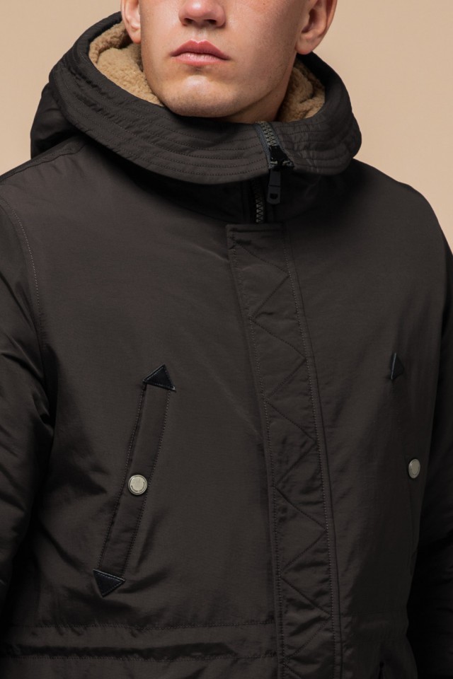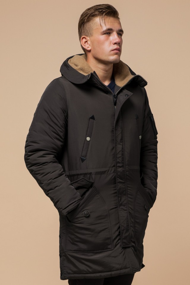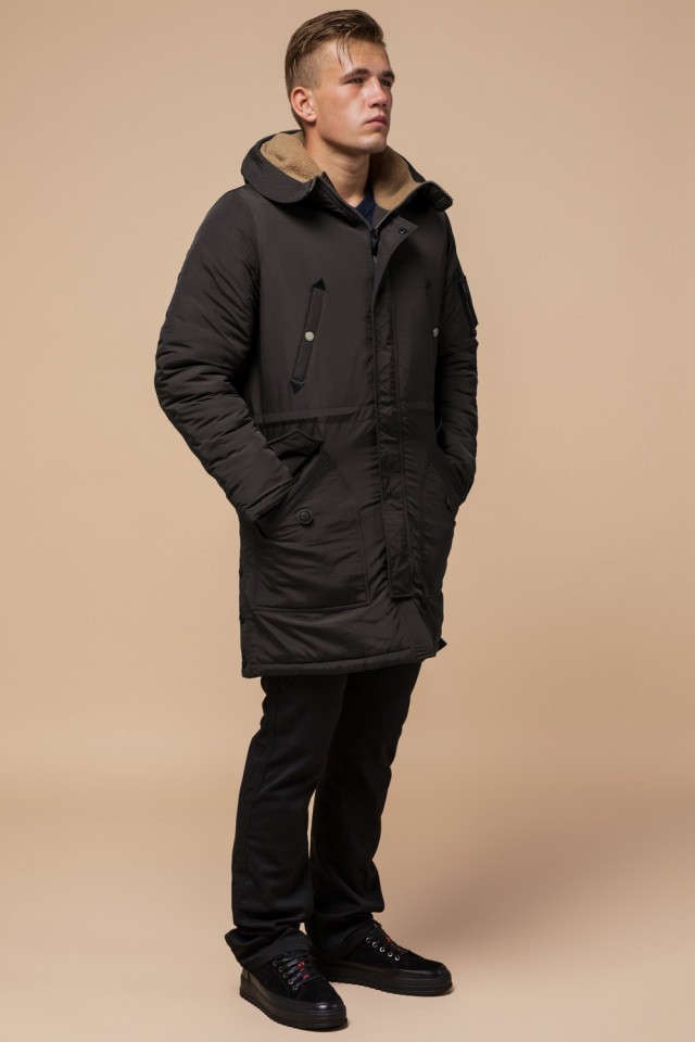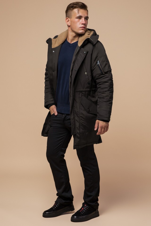 Парка коричневая мужская удлиненная зимняя модель 90520