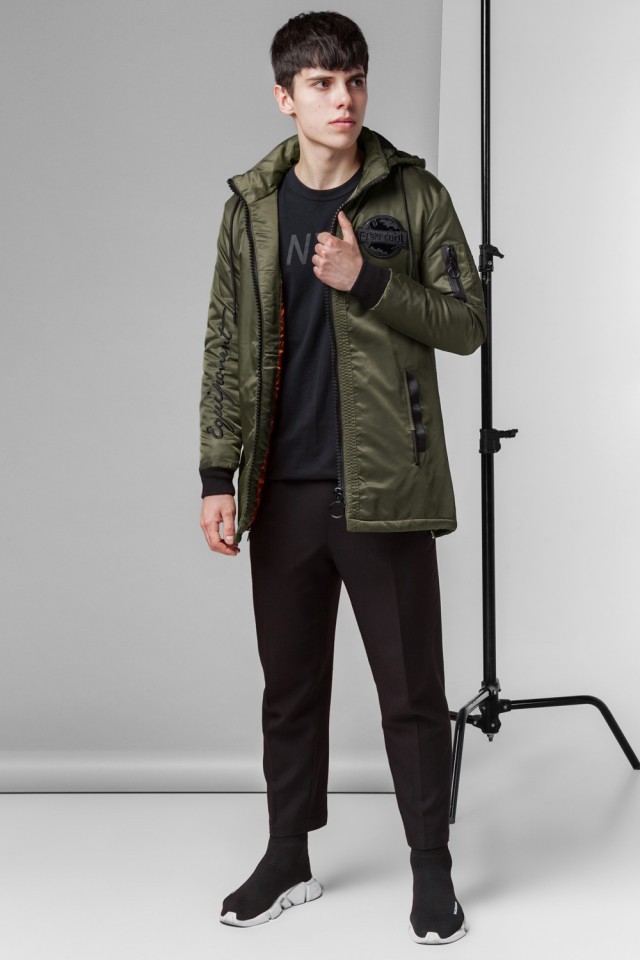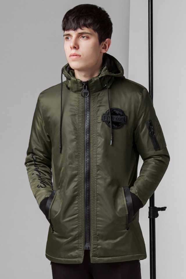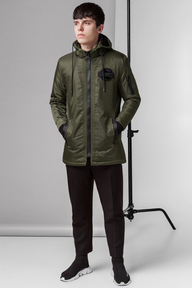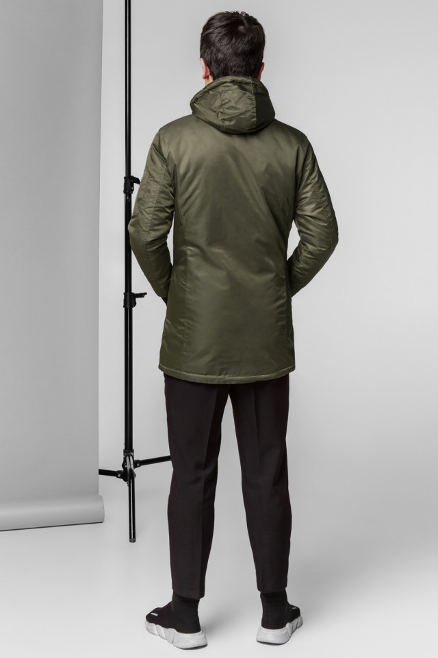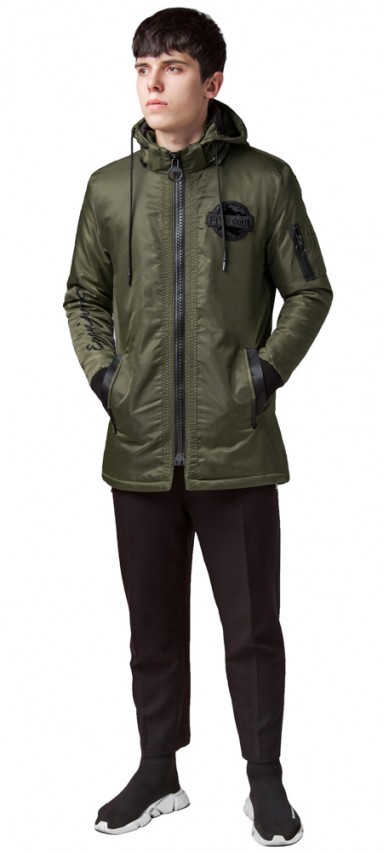 Парка молодежная осенне-весенняя на молнии мужская цвета хаки модель 45532