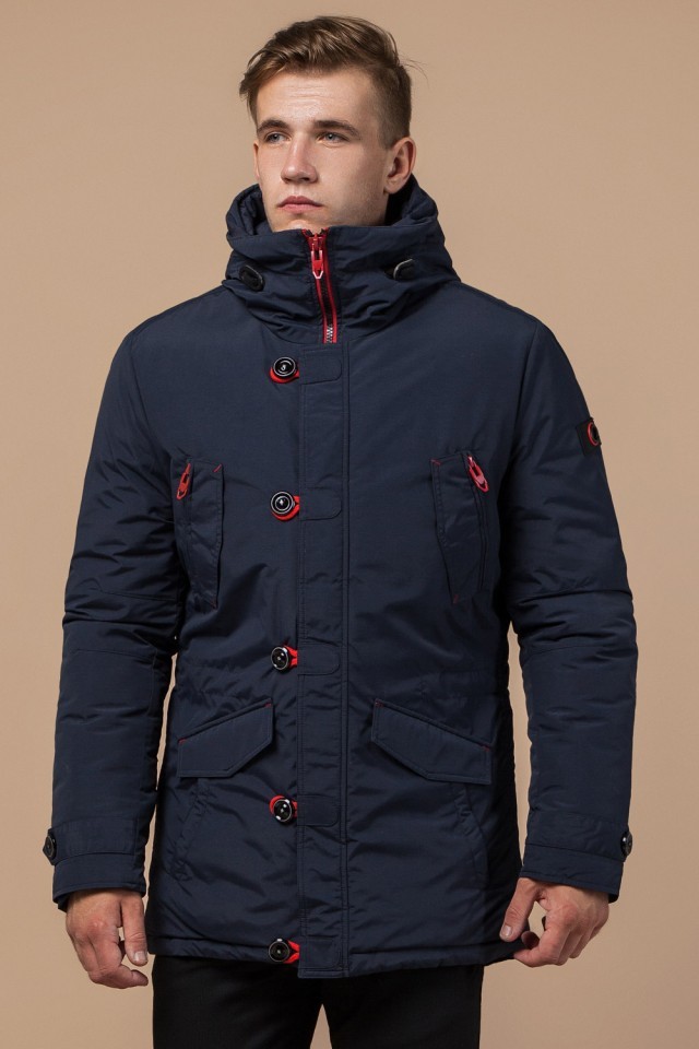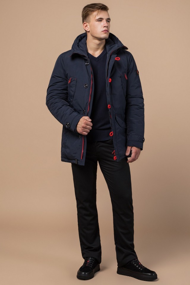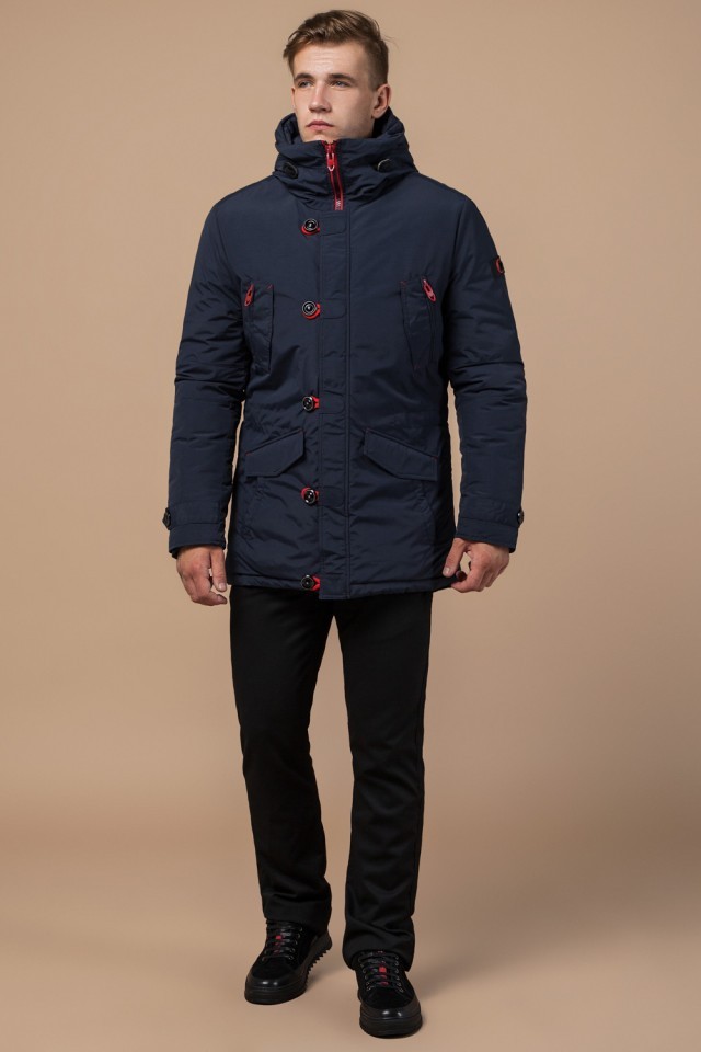 Парка мужская с воротником-стойкой зимняя цвет синий-красный модель 44230