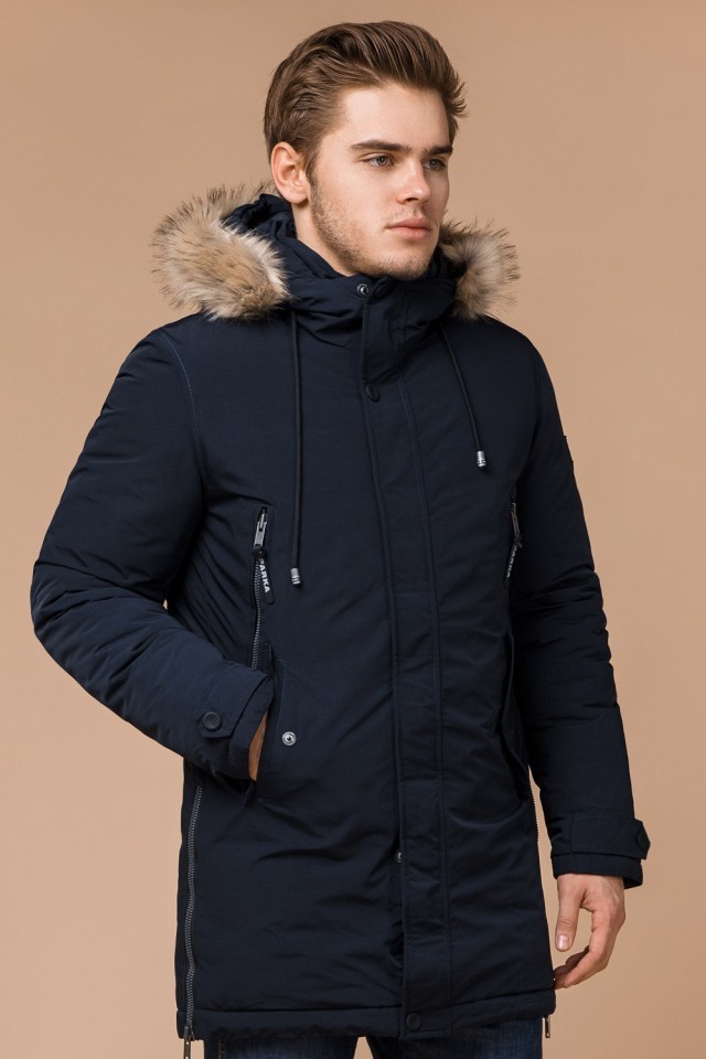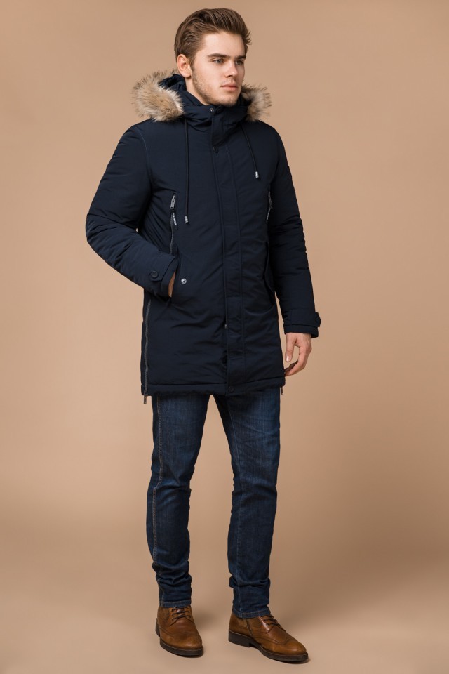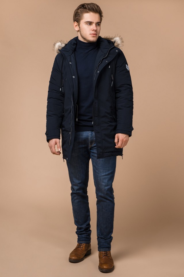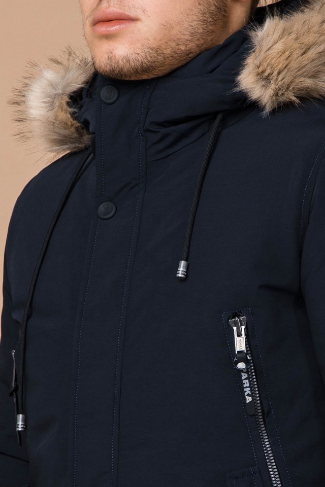 Парка мужская темно-синяя с капюшоном зимняя модель 20758