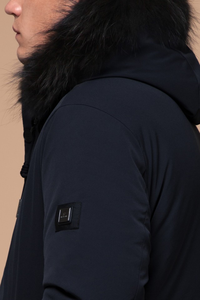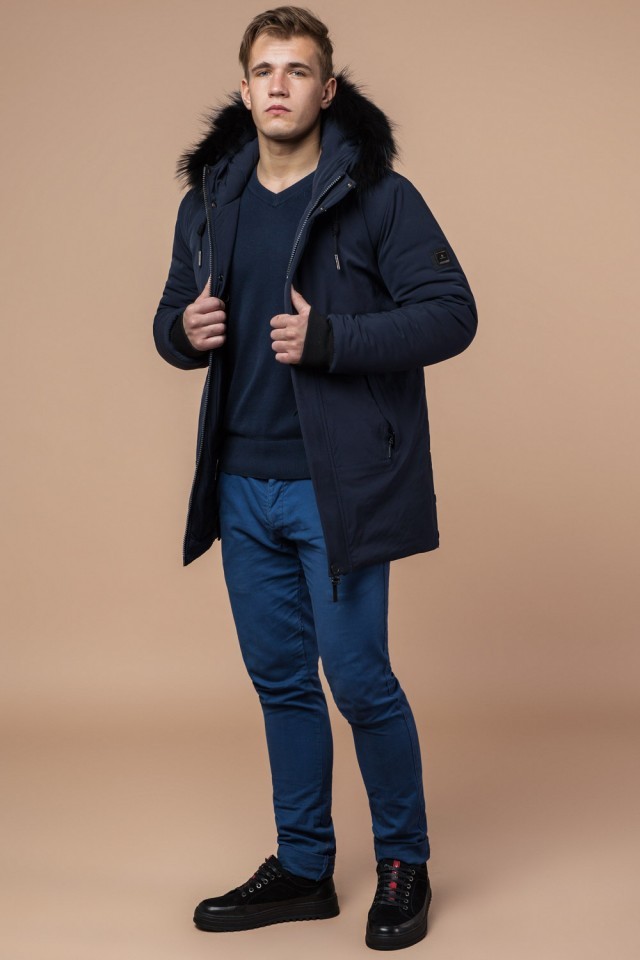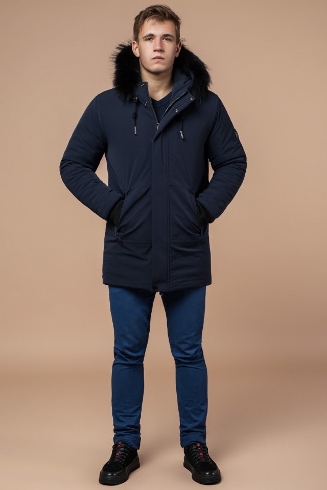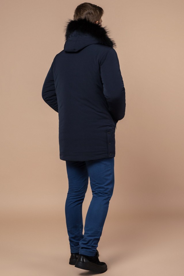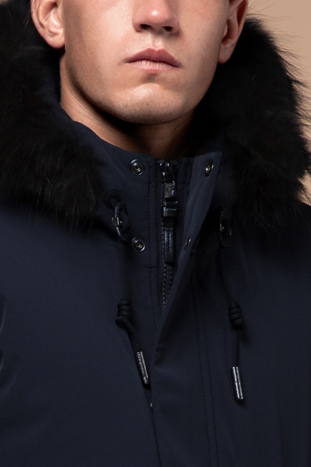 Парка мужская темно-синяя зимняя с меховой опушкой модель 9255