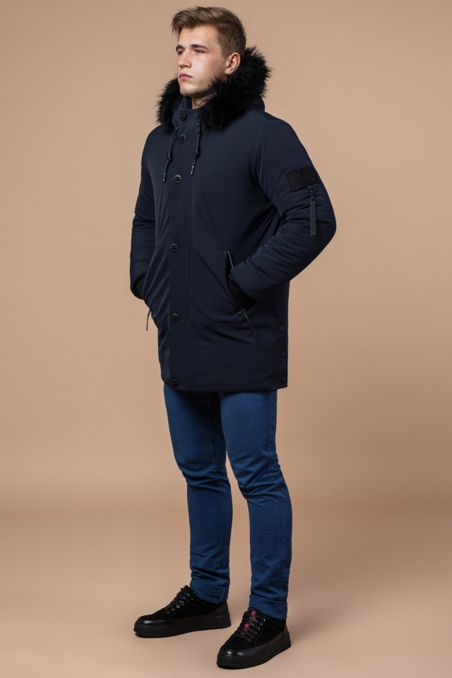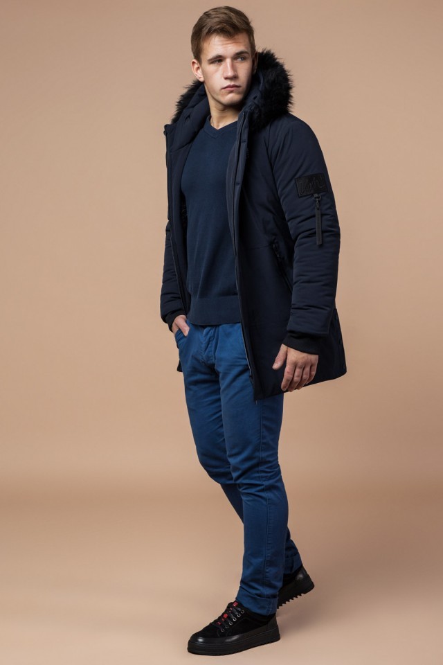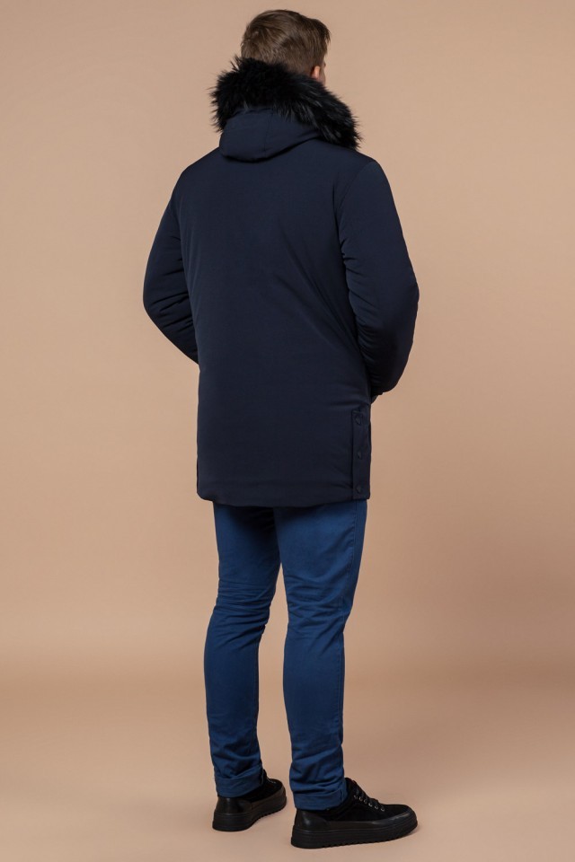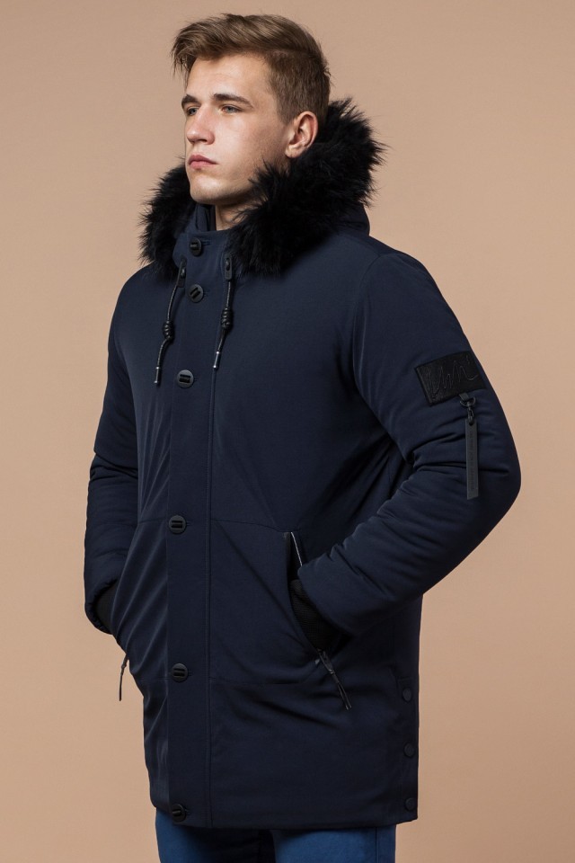 Парка мужская зимняя темно-синяя с кулиской модель 9842