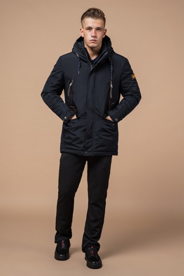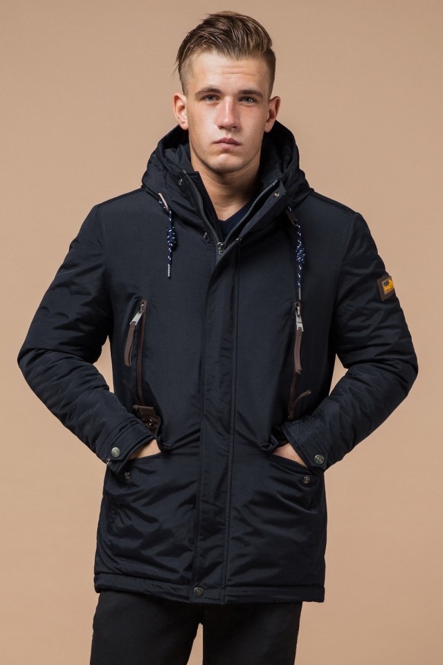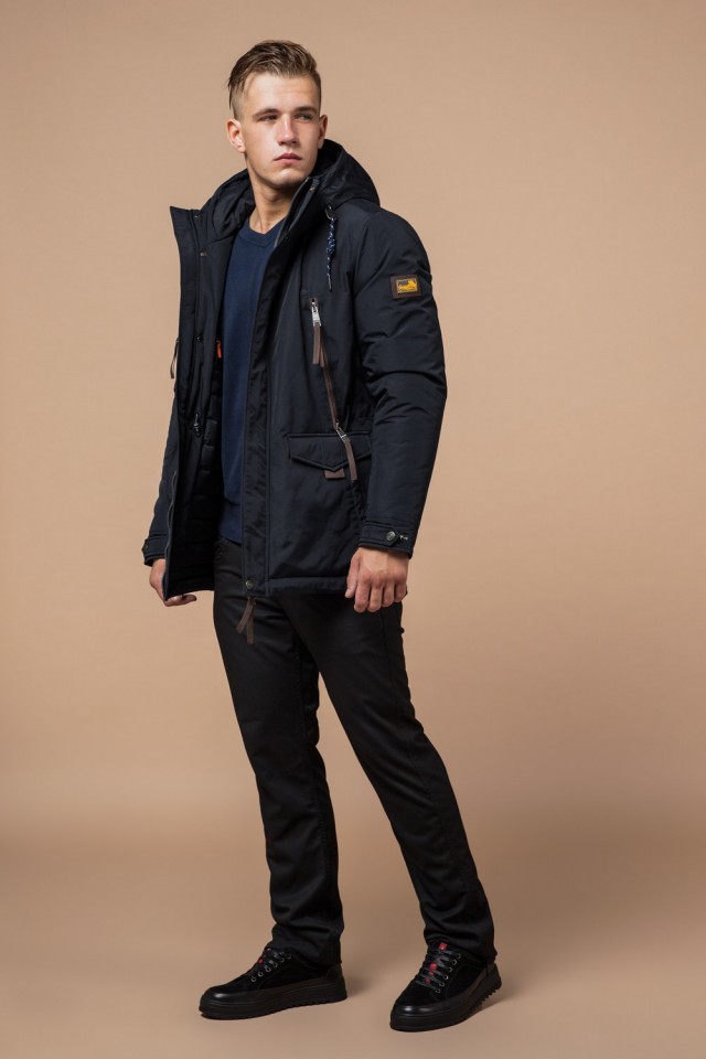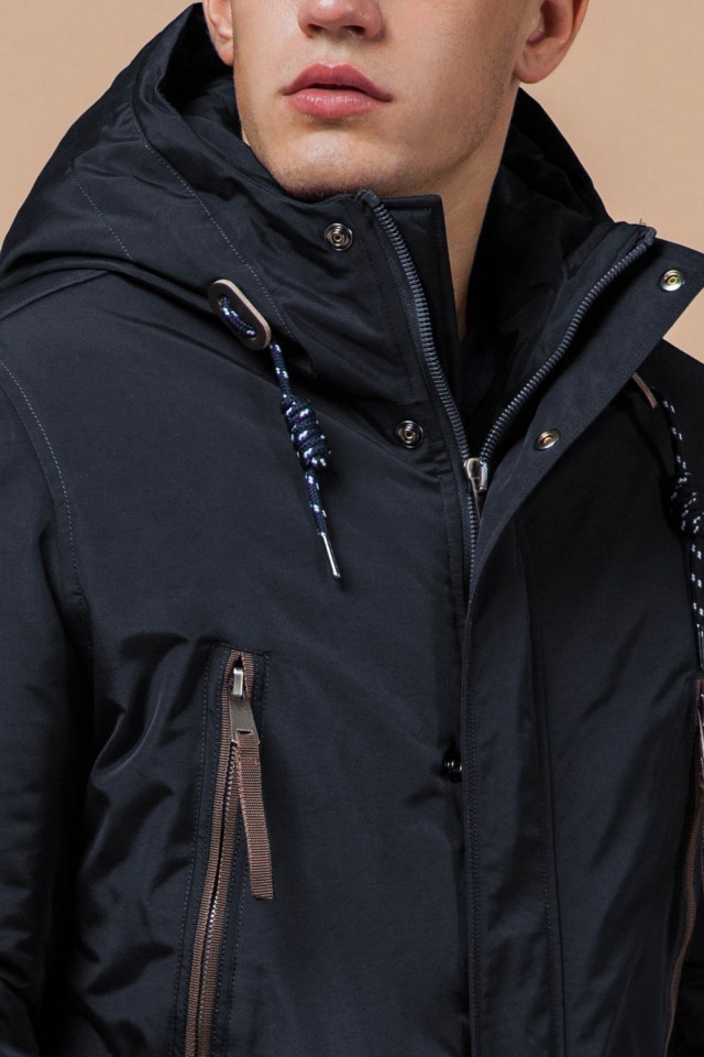 Парка зимняя с карманами мужская цвет темно-серый-коричневый модель 1533