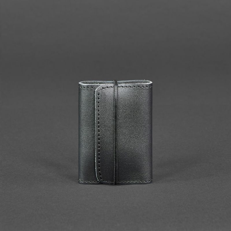 Кейс изготовлен полностью вручную из цельного куска кожи. Закрывается изделие на резинку, закрепленную люверсом. Внутри находится вспомогательный клапан, который улучшает фиксацию карт.