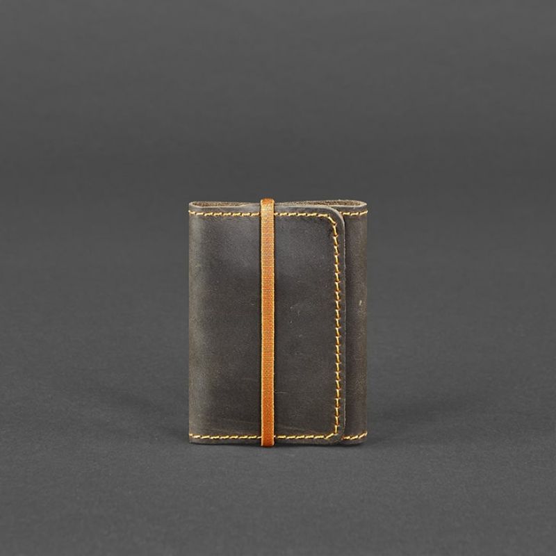 Кожаный кард-кейс 1.1 темно-коричневый Crazy Horse с оранжевым