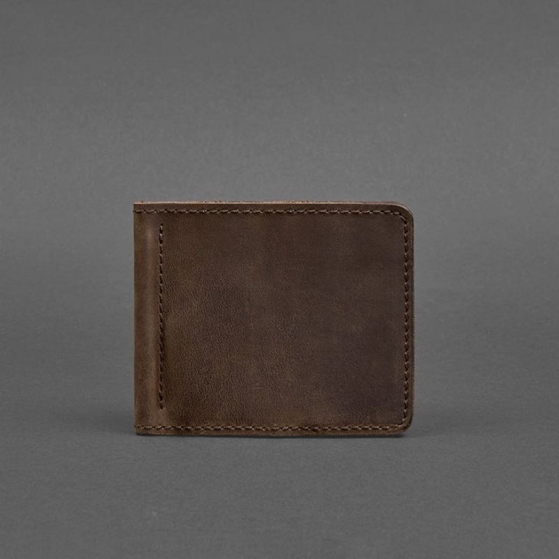 Мужское кожаное портмоне темно-коричневое 1.0 зажим для денег