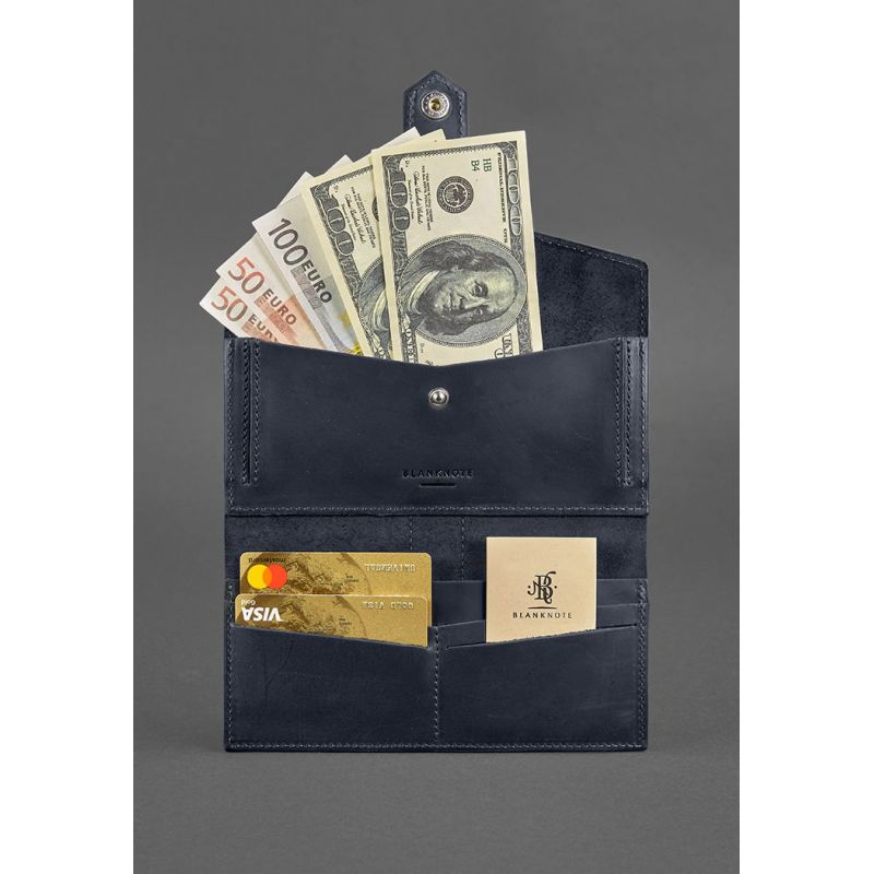 Кожаное портмоне 3.0 синее Crazy Horse