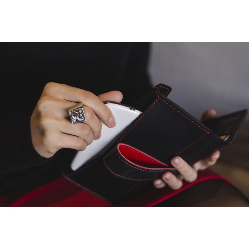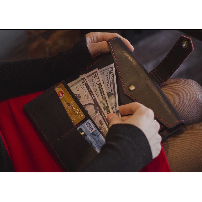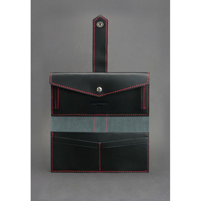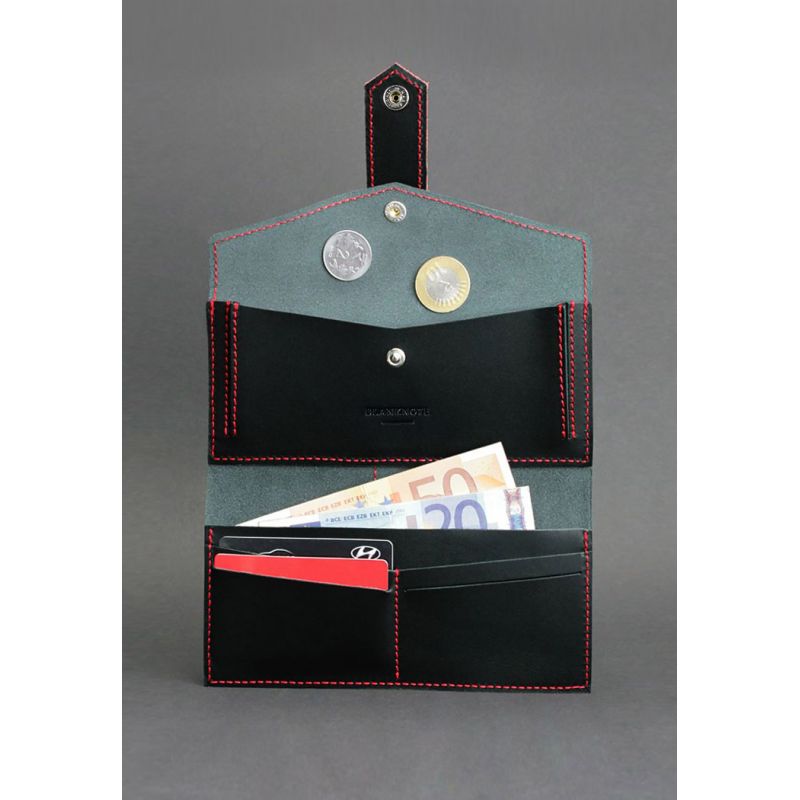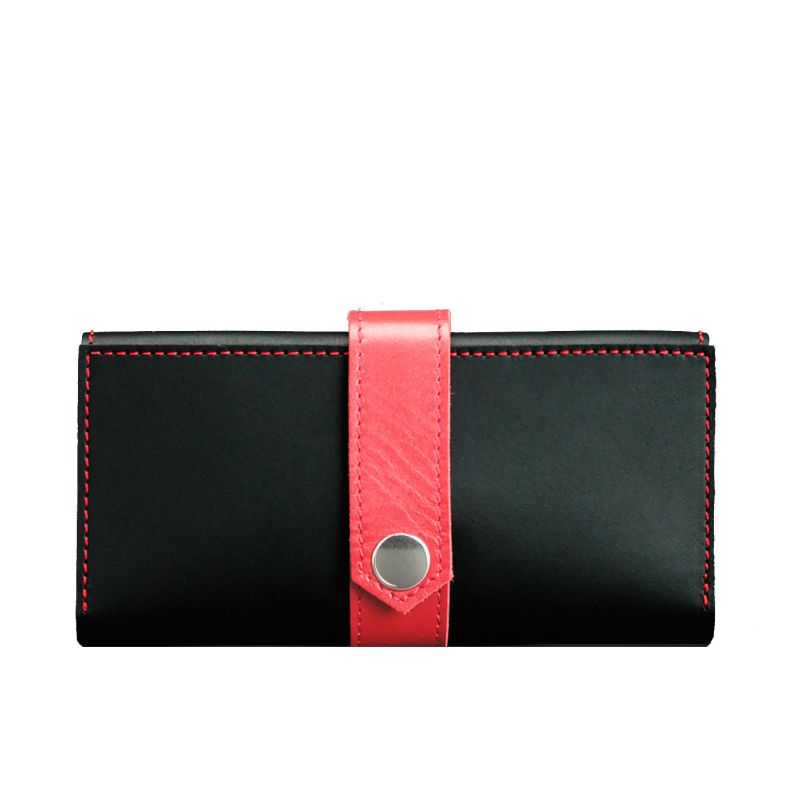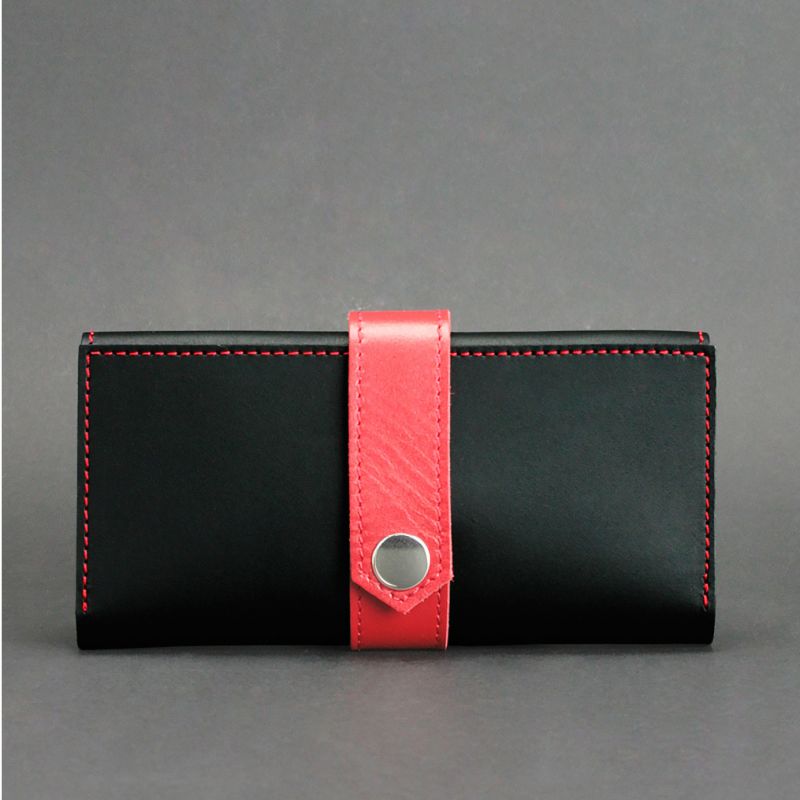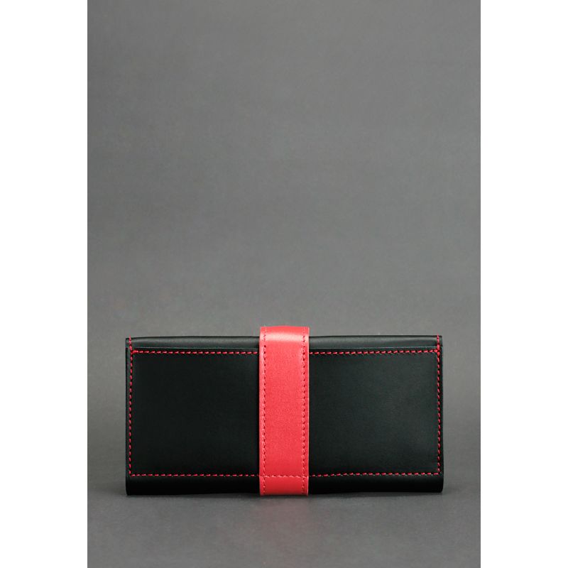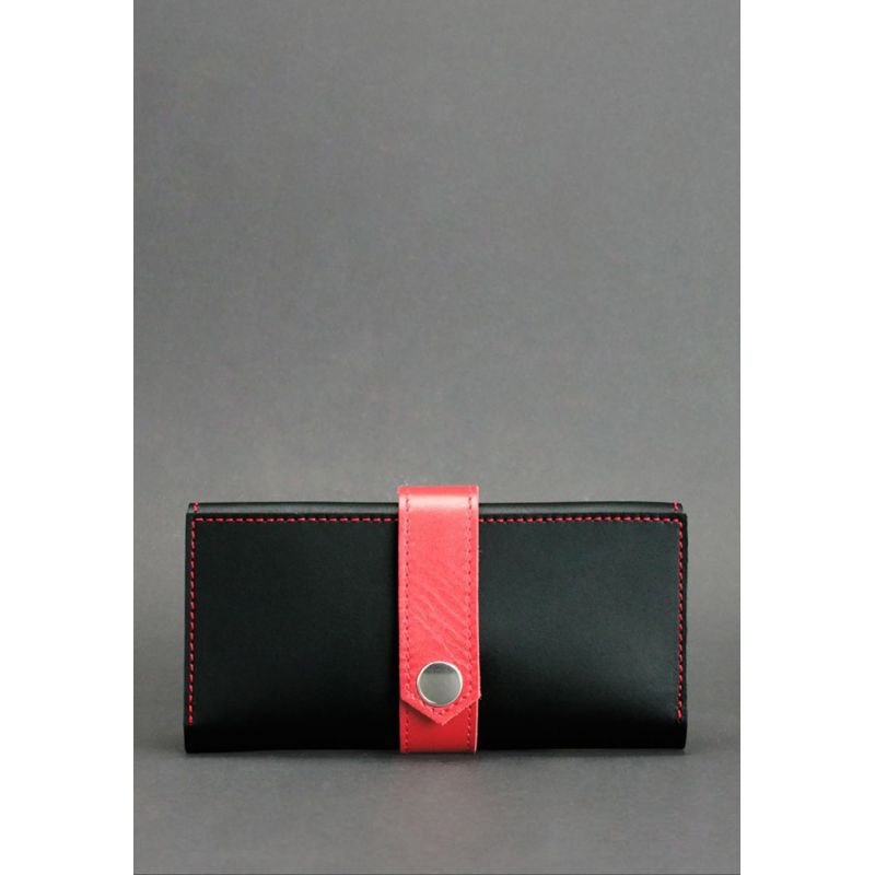 Кожаное женское портмоне 3.0 черное с красным