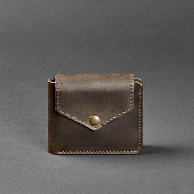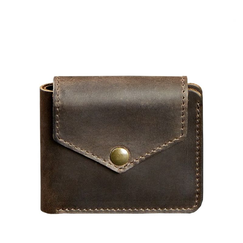 Кожаное портмоне 4.2 на кнопке темно-коричневый Crazy Horse