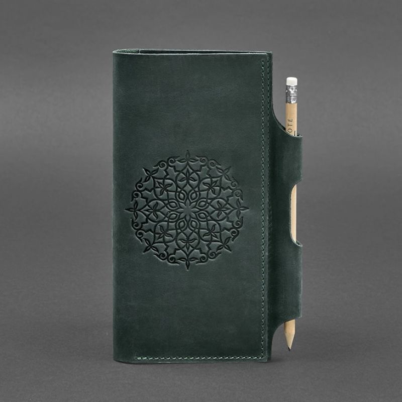 Кожаный женский тревел-кейс 3.0 зеленый с мандалой