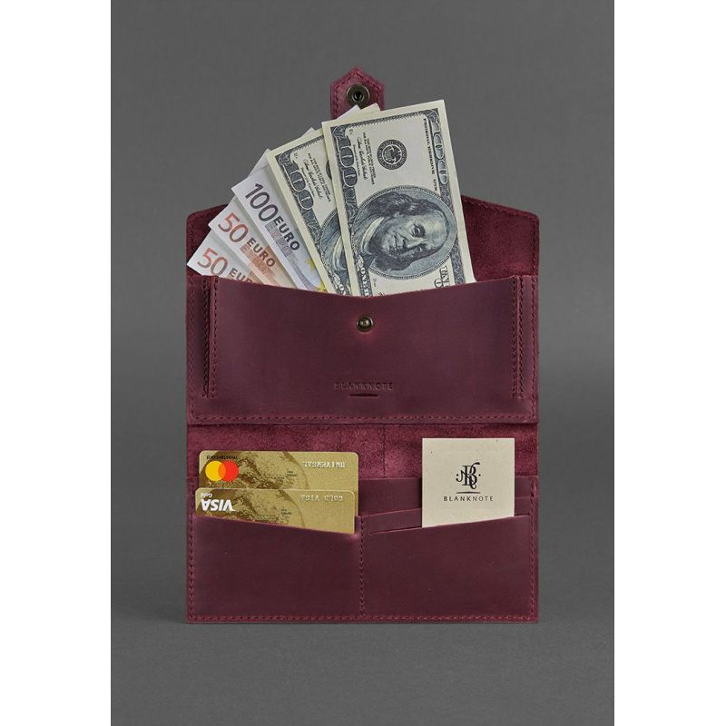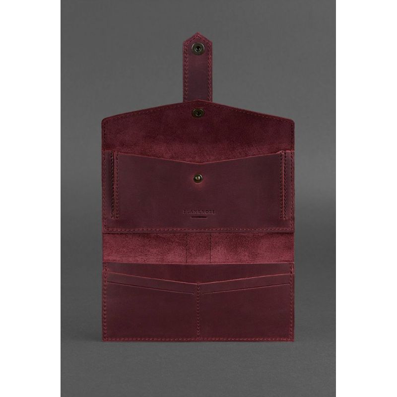 Кожаное женское портмоне 3.0 бордовое Crazy Horse
