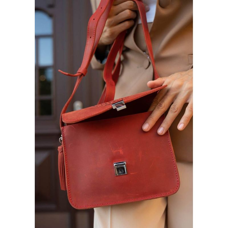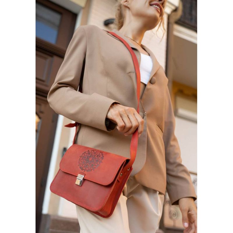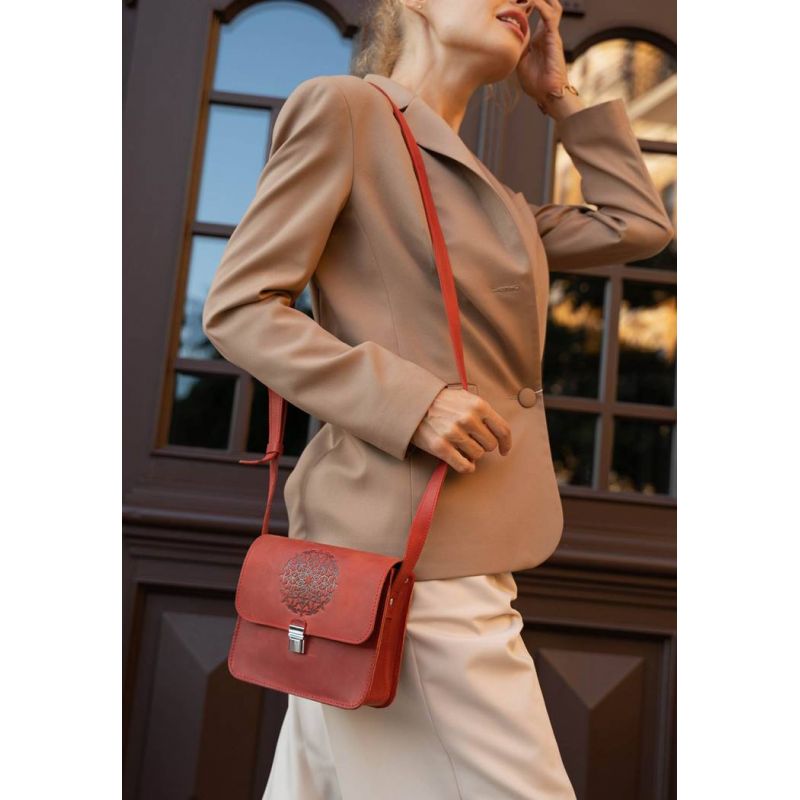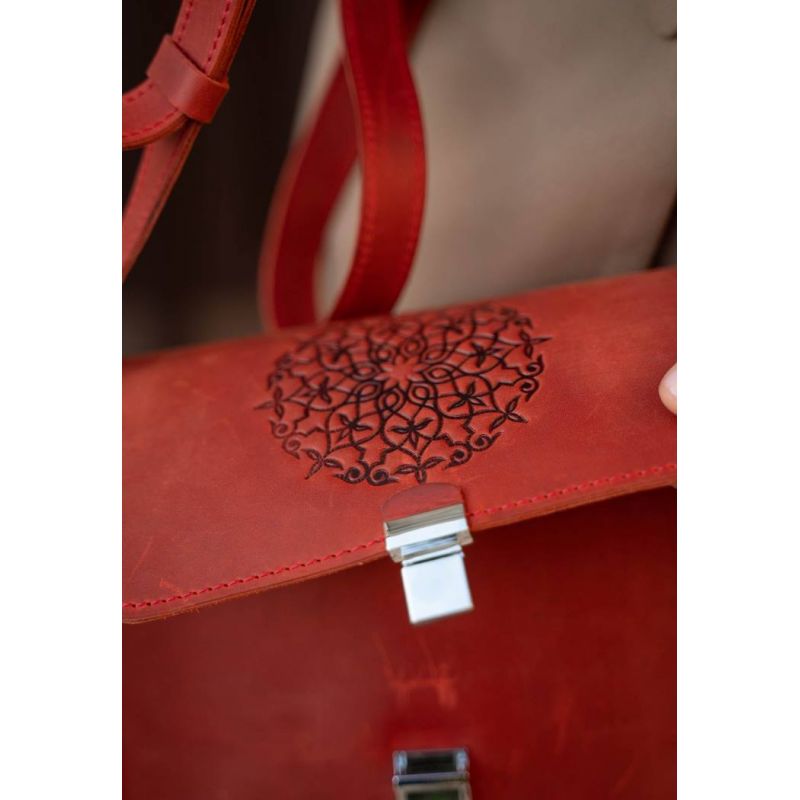 Бохо - сумка «Лилу» кораллового цвета отлично дополнит любой гардероб и сделает образ более ярким, свежим и оригинальным. Она станет ярким дополнением к повседневному образу, прекрасно будет смотреться и с джинсами, и с романтическим платьем, а также добавит шика к вечернему наряду. Выполнена сумка вручную из натуральной кожи в сочном красном оттенке. Украшена орнаментом в виде мандалы. Такая сумка позволит взять с собой самые необходимые вещи, и выглядеть на 100%. Внутри имеется 2 больших отделения и несколько маленьких карманов для денег, карточек и других мелочей. Плечевой ремень регулируется на нужную длину. Сбоку сумки находиться кольцо-люверс, к которому на цепочке можно крепить кошелек или ключи. Также мы приготовили для своих покупателей несколько подарков: Яркая стильная кисточка-брелок из натуральной кожи. Холдер для наушников кораллового цвета Тетрадка с рисунком «Мандала» Гарантия на сумку - 3 года с момента покупки. ВНИМАНИЕ! Выделка данной кожи предполагает естественное появление на ней царапин и потертостей в ходе использования! От этого изделие становится более индивидуальным и приятным, это оценят настоящие поклонники винтажного стиля:)  А так же первое время кожа может краситься при сильном трении об другие предметы  - это особенность её выделки, постепенно этот эффект уменьшается,  кожа полируется и приобретает чуть глянцевый эффект. Фурнитура и комплектация может быть изменена производителем
