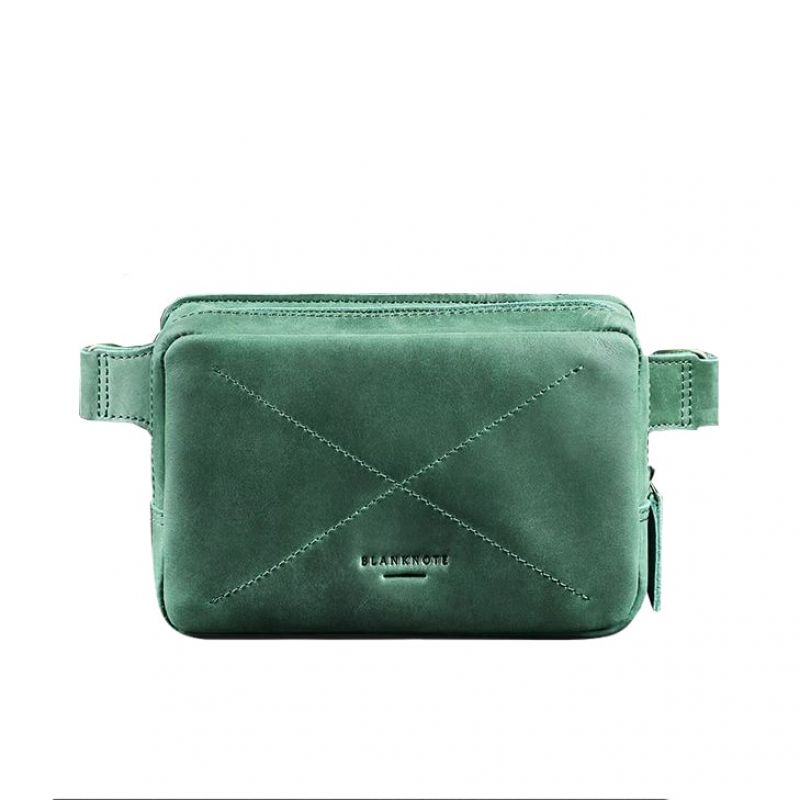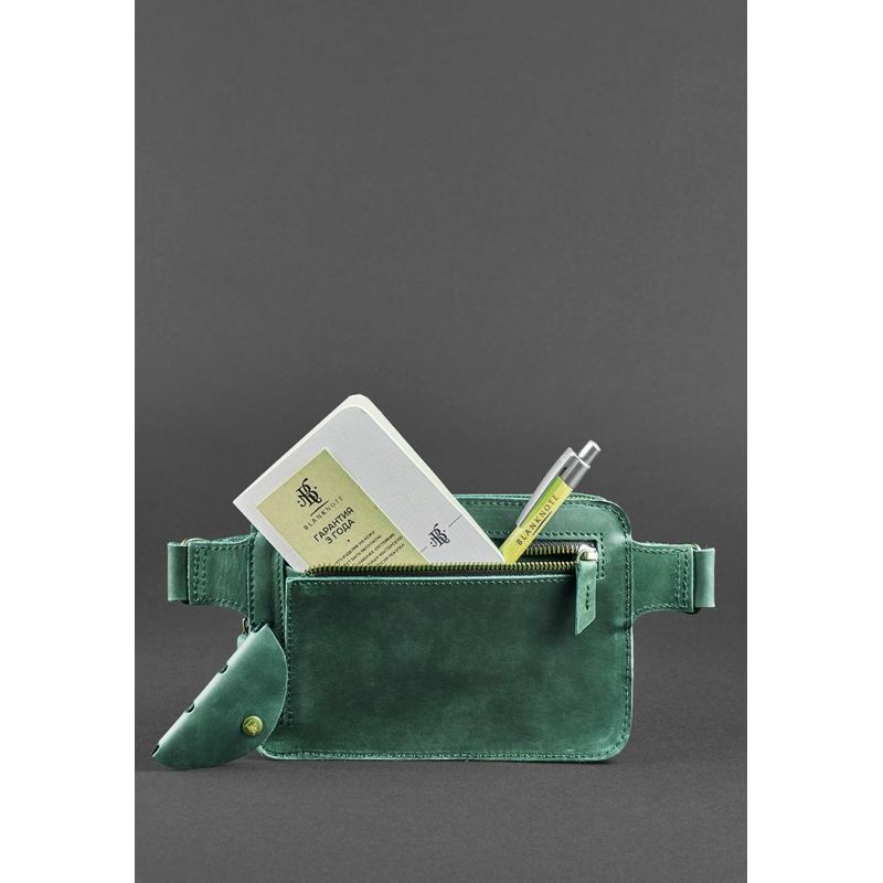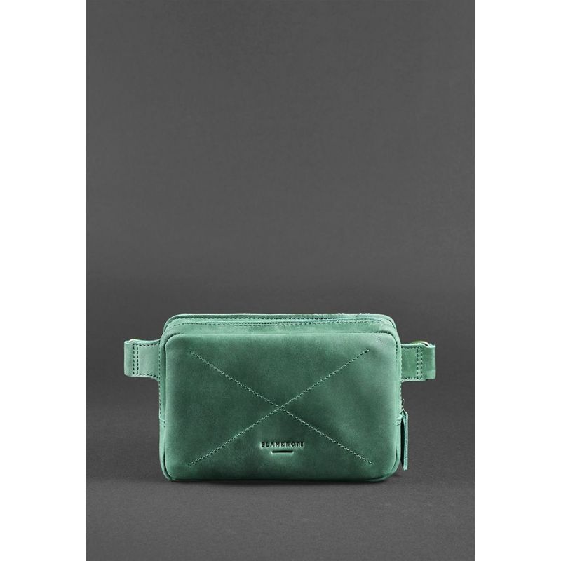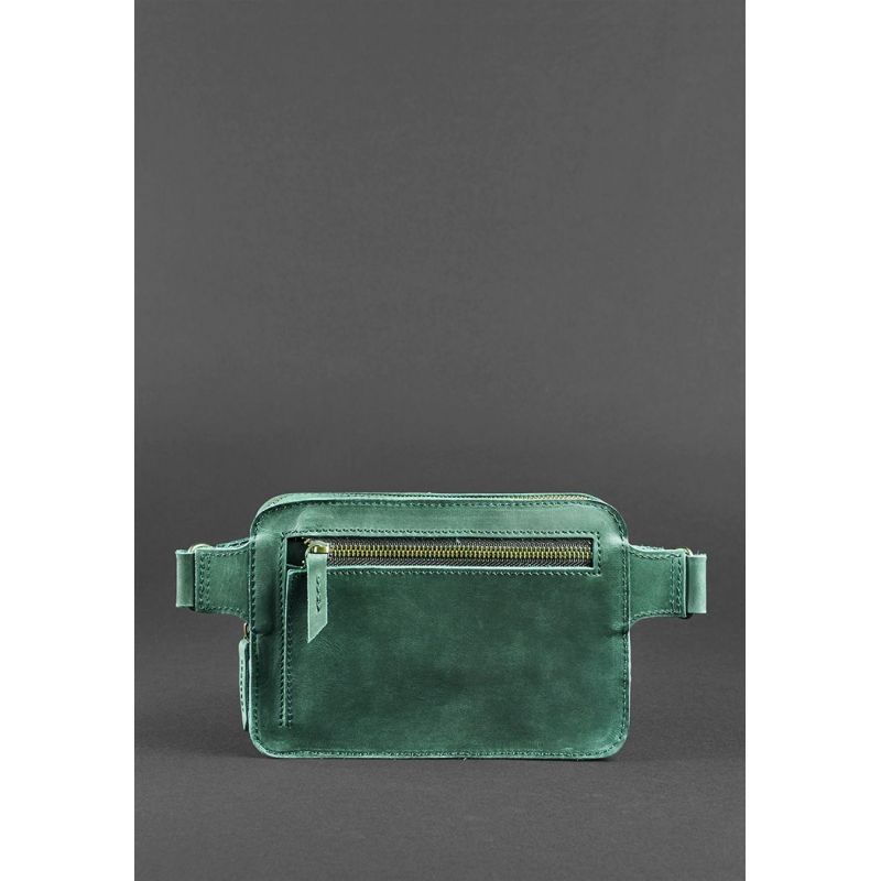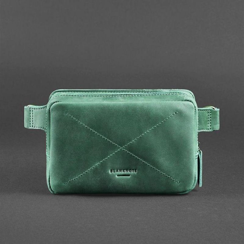 Небольшая поясная сумка из очень плотной натуральной кожи изумрудного цвета.