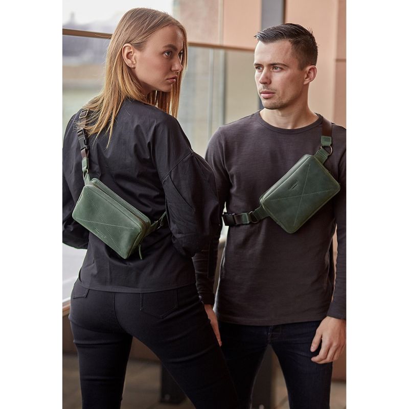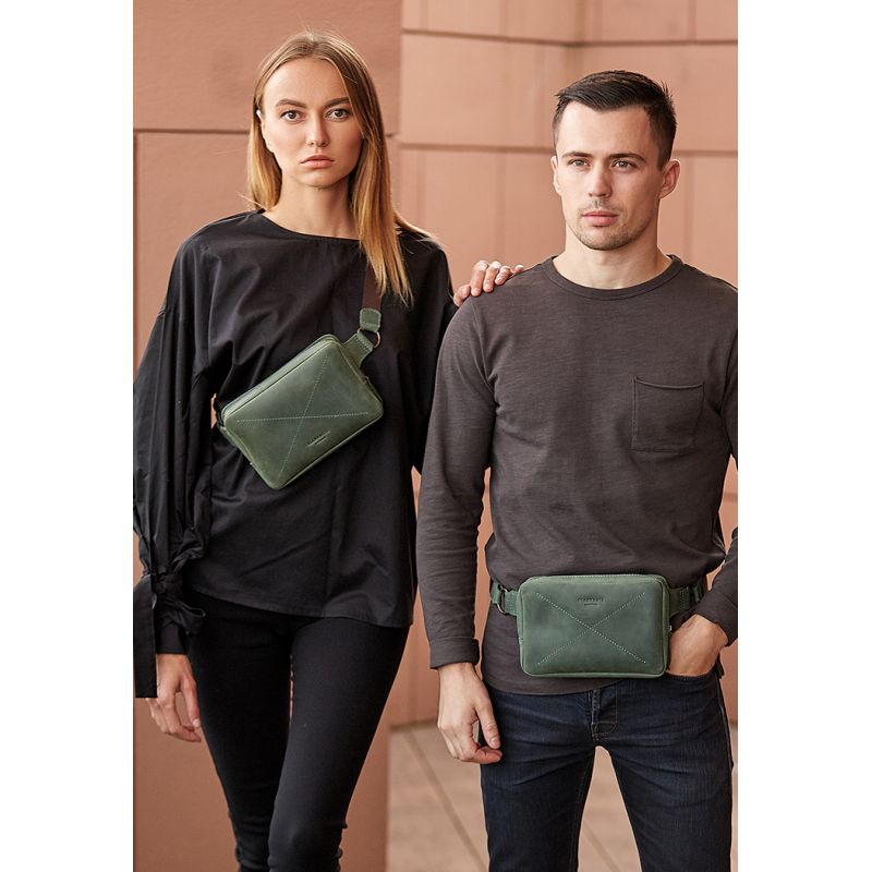 Кожаная поясная сумка Dropbag Mini зеленая Crazy Horse