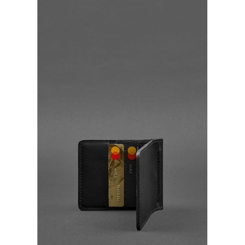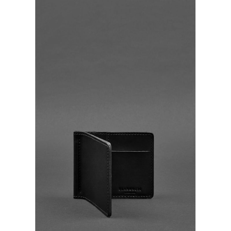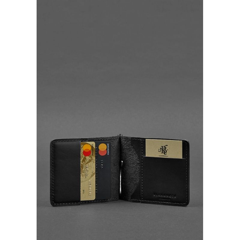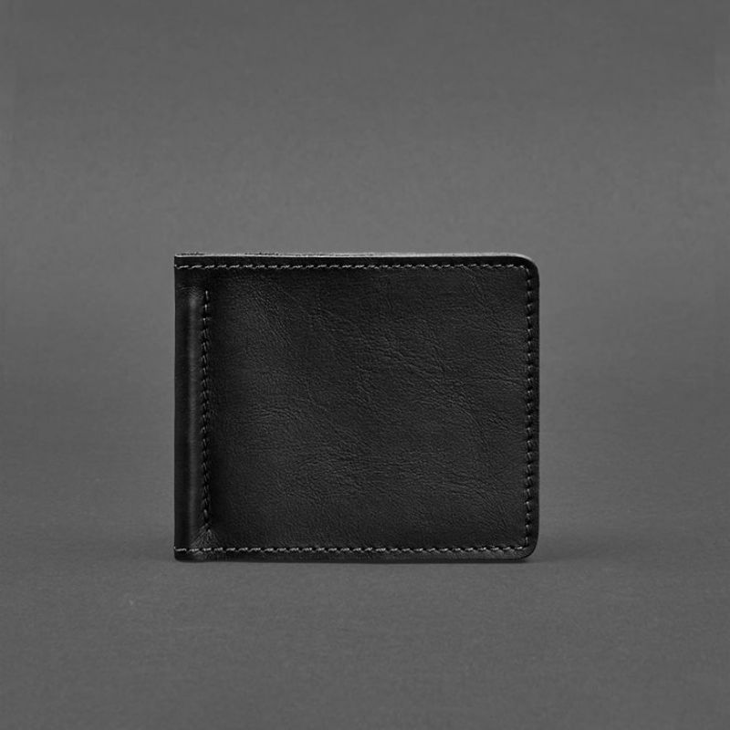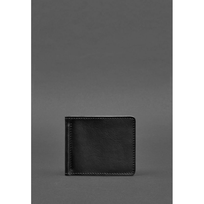 Мужское кожаное портмоне черное Краст 1.0 зажим для денег