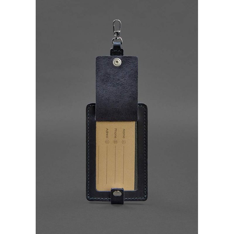 Кожаная бирка для багажа Бланк-тэг синяя Crazy Horse