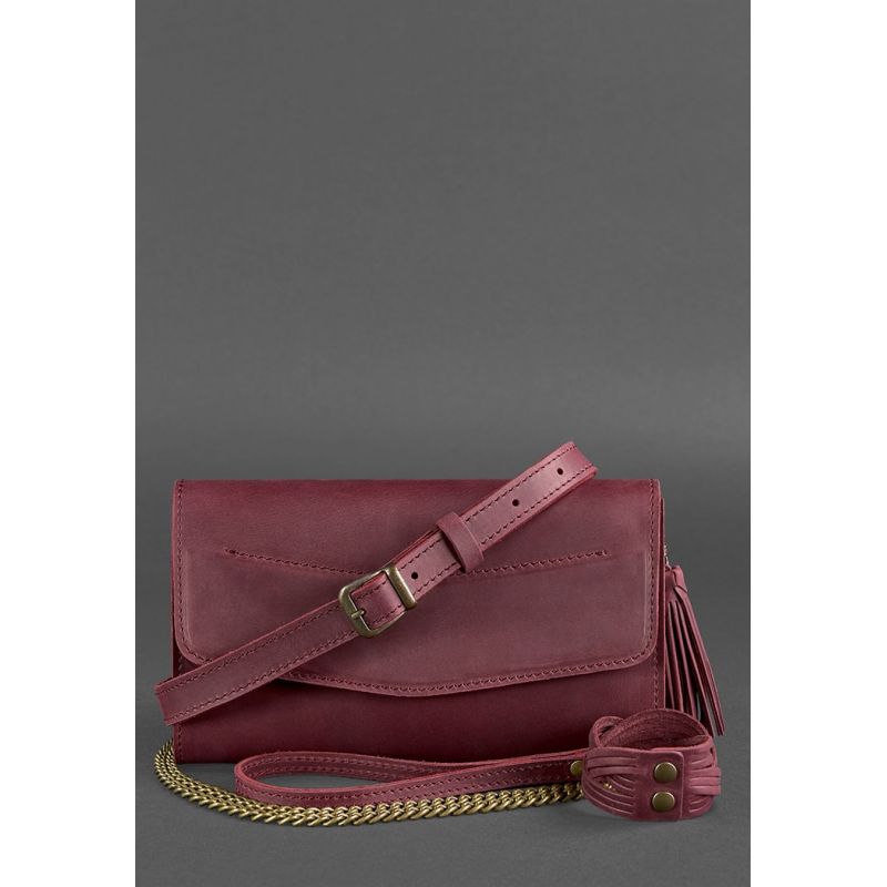 Кожаная женская сумка Элис бордовая crazy horse