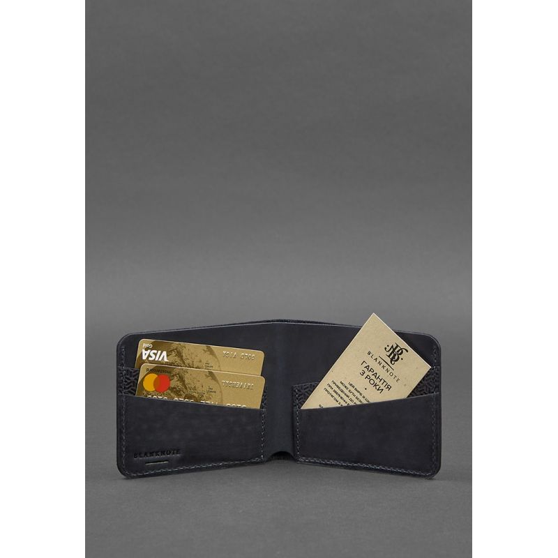 Мужское кожаное портмоне 4.1 (4 кармана) синее Карбон