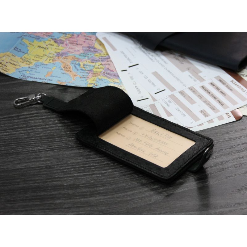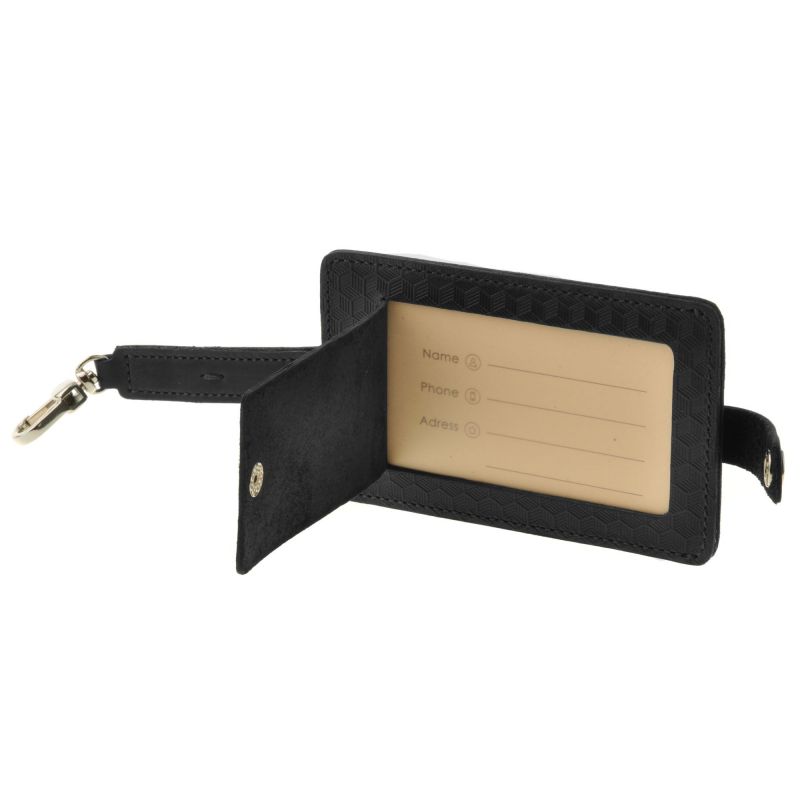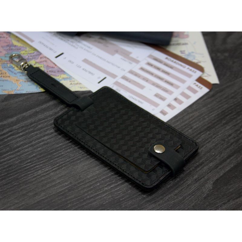 Кожаная бирка для багажа Бланк-тэг черная Карбон